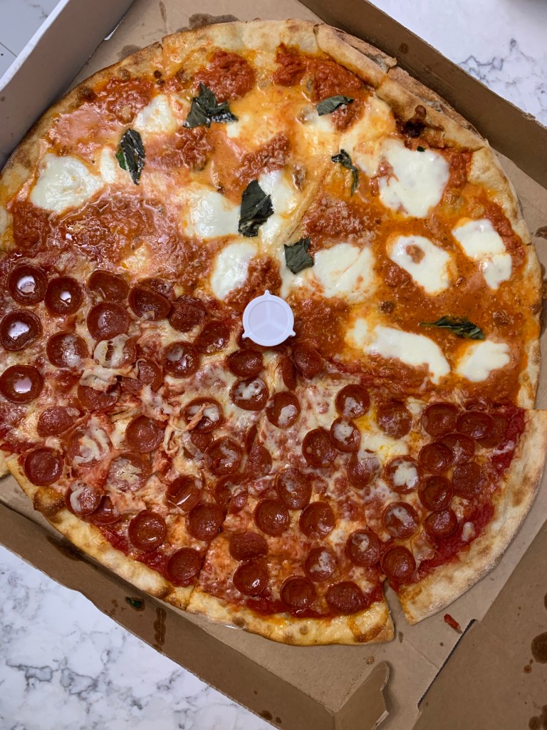 I started with a caesar and it was GOOD. The lettuce was legit. This is no salad in a bag situation. I also got a large pizza: half vodka, half pepperoni. The vodka was simple but delicious and was truly the vodka sauce you’d want on your pasta. Most vodka pizzas are just normal pizza with some meh penne vodka thrown on top. This was truly replacing the sauce with high quality vodka sauce, adding fresh mozz, and sprinkling with fresh basil. I bet this would be good with a little sausage on top hmmm. The pepperoni half was also great, especially if you’re a fan of ‘roni cups. Bottom line: it was all delicious, thanks in large part to the crust which was close to perfect.