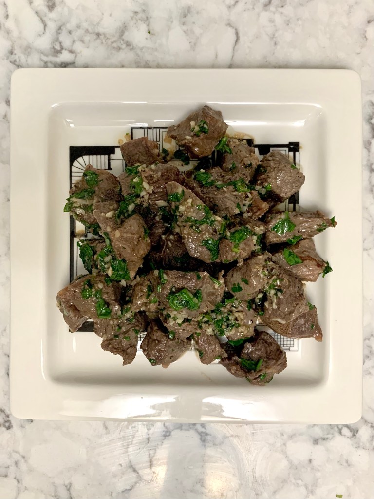 I sure hope you drizzle all that extra garlic butter over the steak bites when you serve. Who needs to be kissed tonight anyway? Garlicky steak is a staple and you can now make it very easily. Like weeknight kinda easily. A steakhouse meal no longer has to live in special occasion territory.