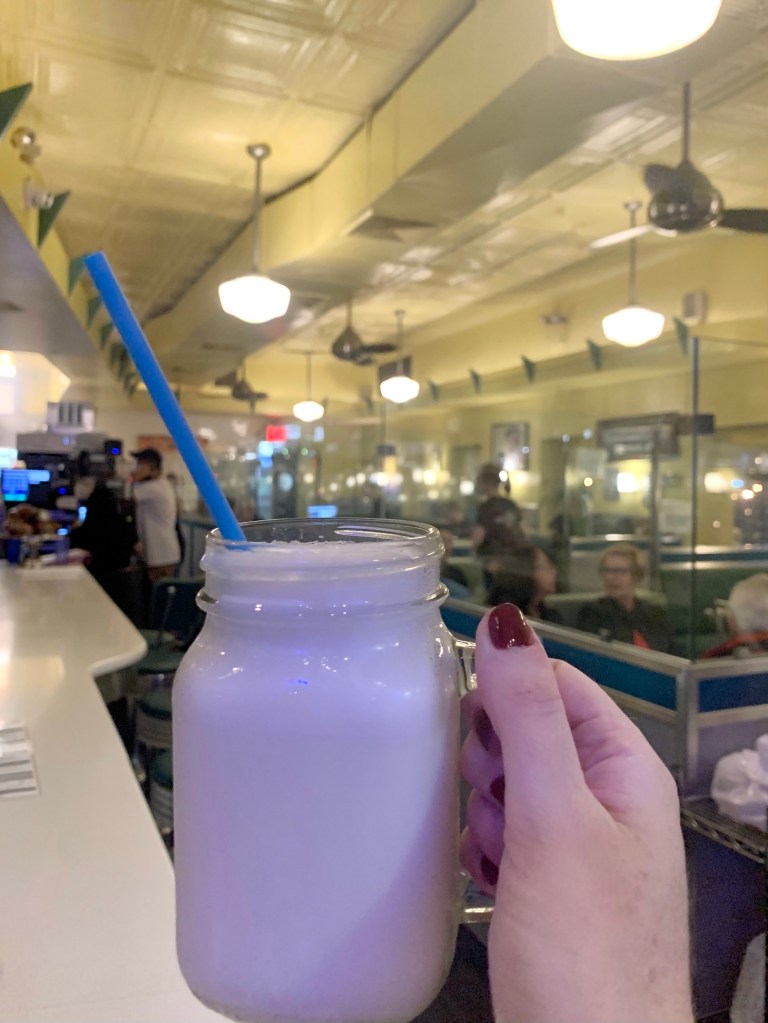 On Friday we had some time to kill before our table was ready so we grabbed drinks at a spot next door. Since it was a diner-type place I decided to get something totally different for me – an egg cream. I actually don’t even know if I’ve ever ordered a whole one for myself before but it felt so Old New York to be sitting at a lunch counter, drinking an egg cream. My La La would be very pleased.