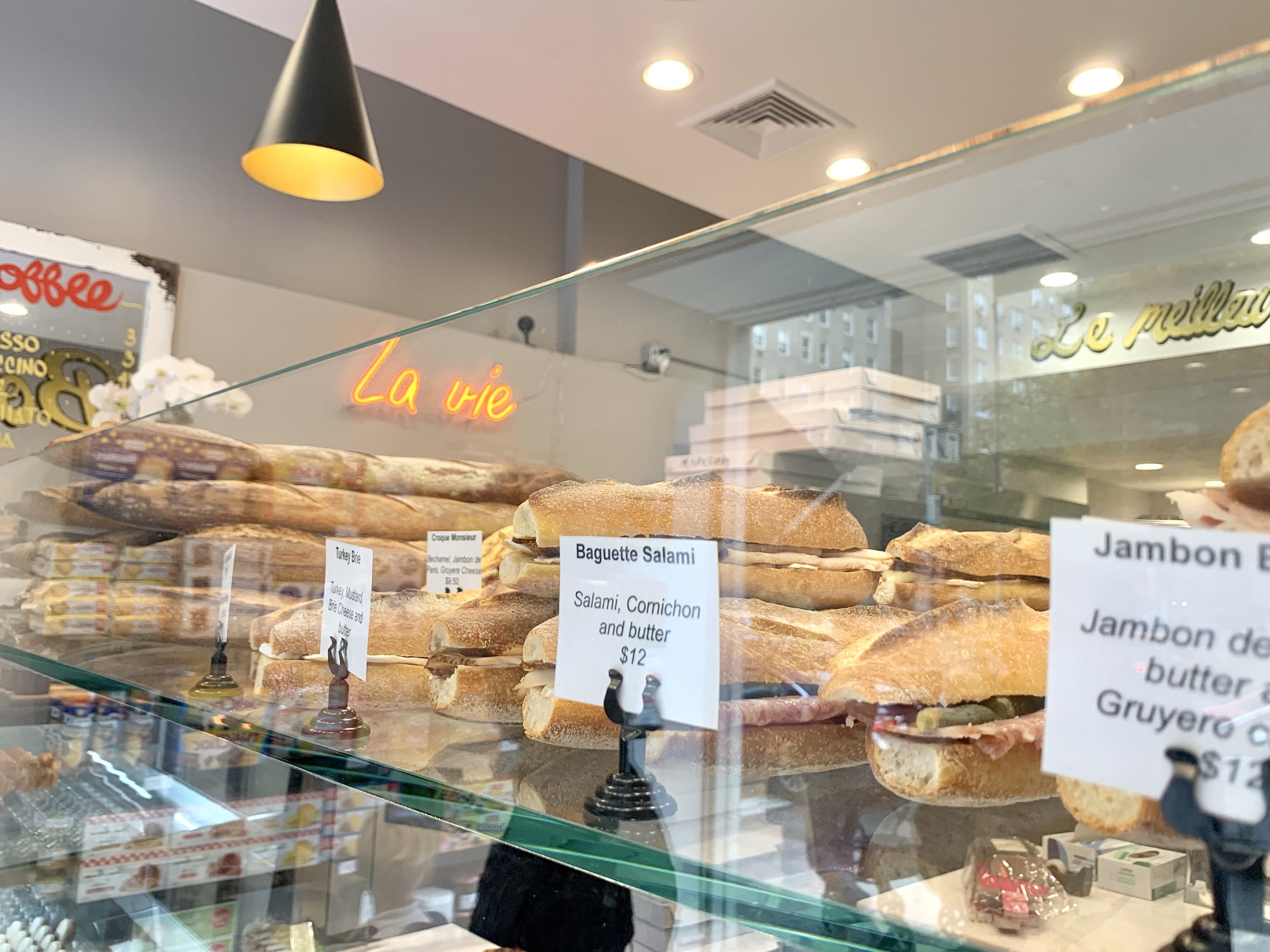 The space is small but they’ve got a nice variety in the pastry case. Up top they’ve got breads and savory sandwiches. I’m going to have to go back for some of these. On the bottom, there’s eclairs, tarts, and savory pastries. All in all, there are about 10-12 beautiful, different pastries. There are also smaller bites like macarons and madeleines if you just want a little something.