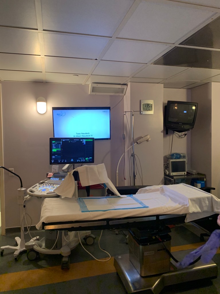 - Transfer: While done in a surgical room, the transfer is very similar to an IUI. This time, instead of using a catheter to inject sperm, they’re using it to inject an embryo. It’s going in a bit further, but you don’t even feel it. It feels a bit more intense only because there are more doctors and nurses around and you’re watching the whole thing on a monitor. You have to go in with a very full bladder, which is the only uncomfortable part…especially since you have to hold it for 10 minutes after the procedure. I almost peed on the table at one point.