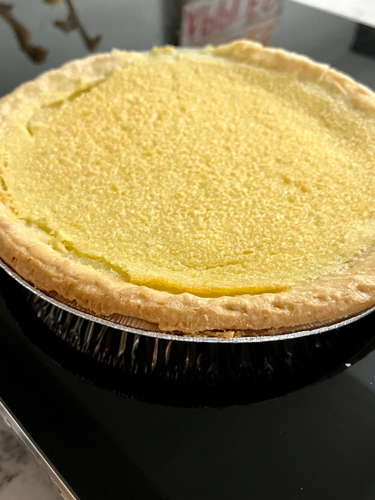My plan for the Thanksgiving dessert was to outsource it. I’d rather take help from an established bakery than attempt anything myself when I was cooking an entire meal and baking is not my strength under the best of circumstances. Unfortunately, I wasn’t able to make it to the bakery in time and had to make something last minute. I had a ton of buttermilk left in the fridge (from my mashed potatoes) so I googled “pie with buttermilk,” assuming I’d get a lot of recipes for biscuit-topped cobblers. What I found was even better (and easier): buttermilk pie. This is very similar to chess pie – a Southern fave – but even easier because it doesn’t require ingredients like cornmeal. I used the Southern Living recipe and it turned out great.