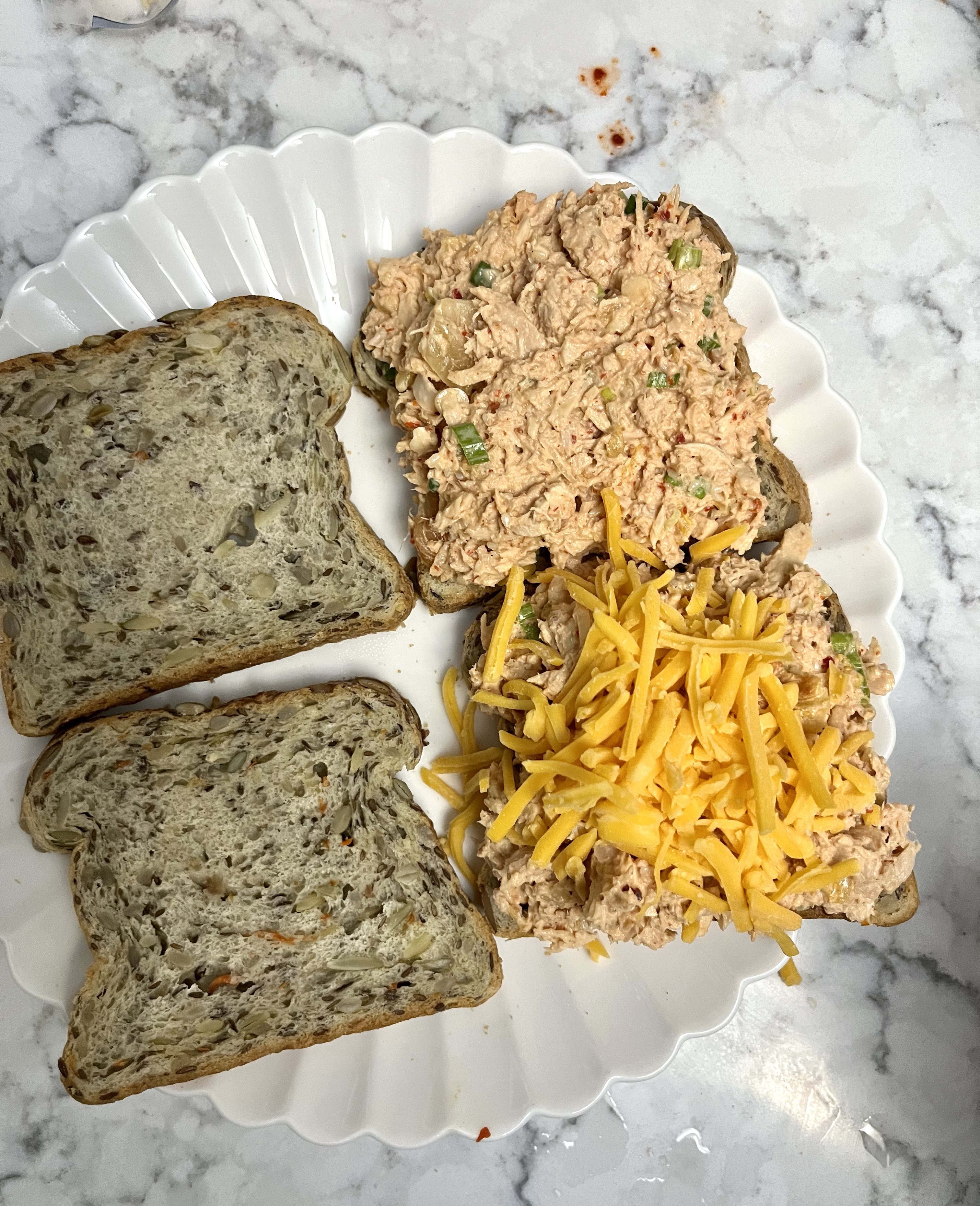 Mix a can of tuna with kewpie mayo, ginger, chopped kimchi, chopped scallions, and sesame seeds. Pile it onto the bread of your choice, top with shredded cheddar. Cook low and slow in a pan with butter.