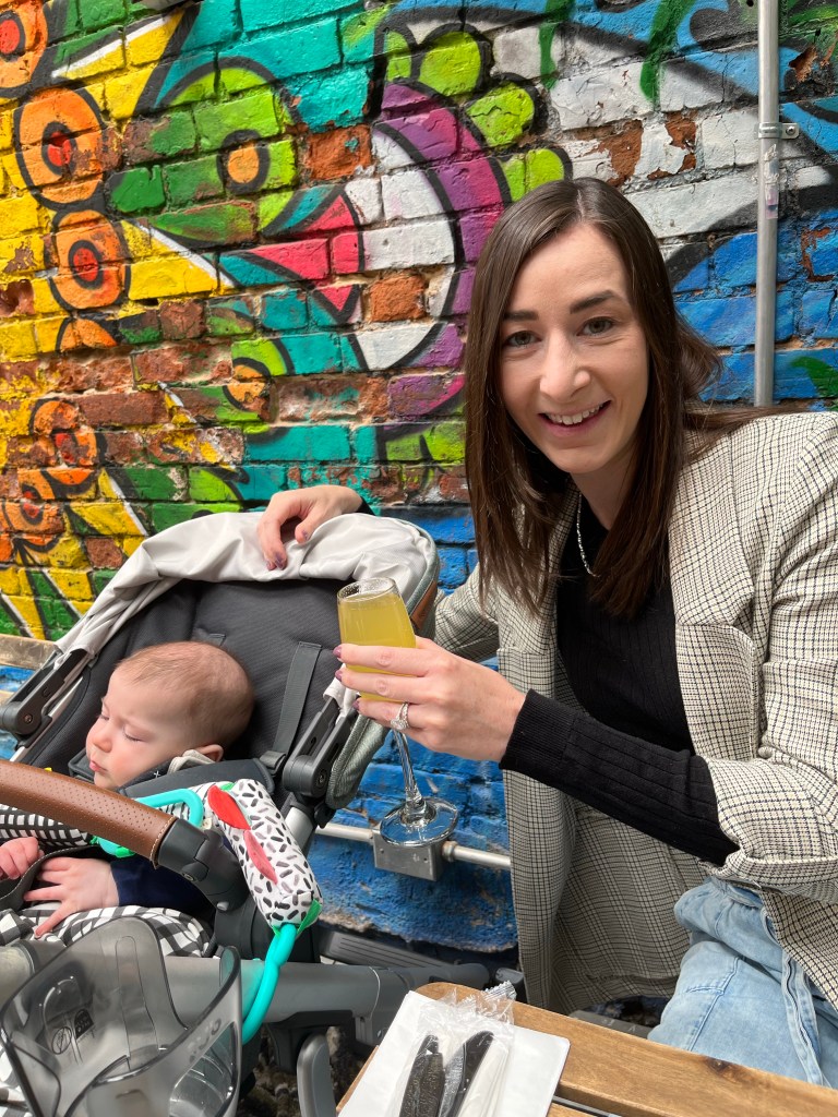 Over the weekend we finally checked out Santiago’s Beer Garden, a neighborhood spot that feels pretty young and downtown…because they do boozy brunch yesssss. I haven’t gone anywhere that offered bottomless mimosas since pre-pandemic and it was a throwback. I was more than happy to introduce Finn to such an iconic NYC tradition.