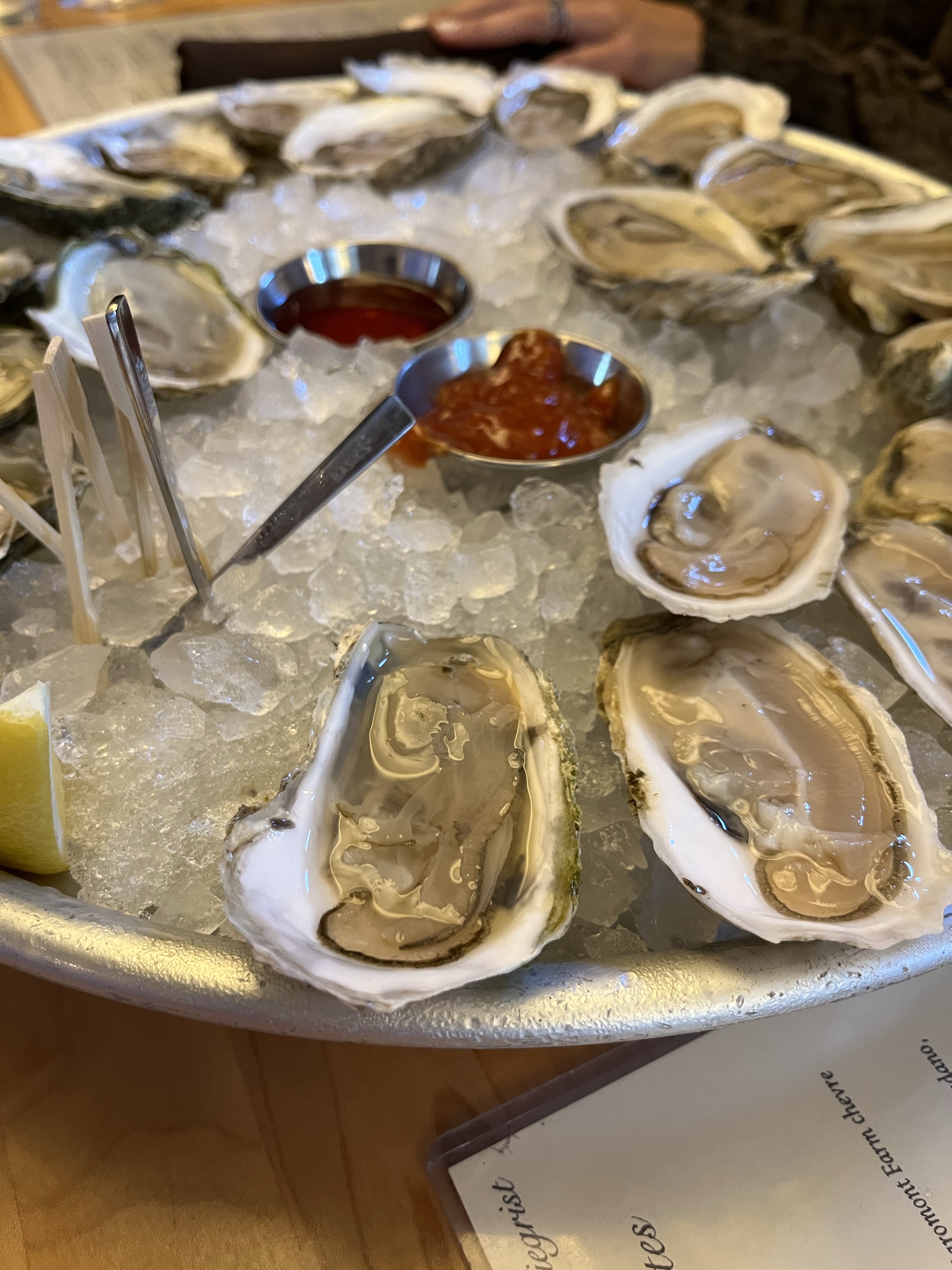 By the time we got back to the hotel, there was just enough time to throw on a new outfit before heading to our dinner reservation. I’m not sure how the group chose Public Fish & Oyster, but it was a good choice. Jules and I did an oyster shooter (nobody else joined…their loss) and the whole table split a bunch of oysters from the raw bar. The whole menu looked good, but I was very happy with my Hodgepodge (clams, mussels, oysters, shrimp, tomato, haricot verts, rice, lobster “Nantua” sauce served over rice). If you’re into seafood, this is a great spot.