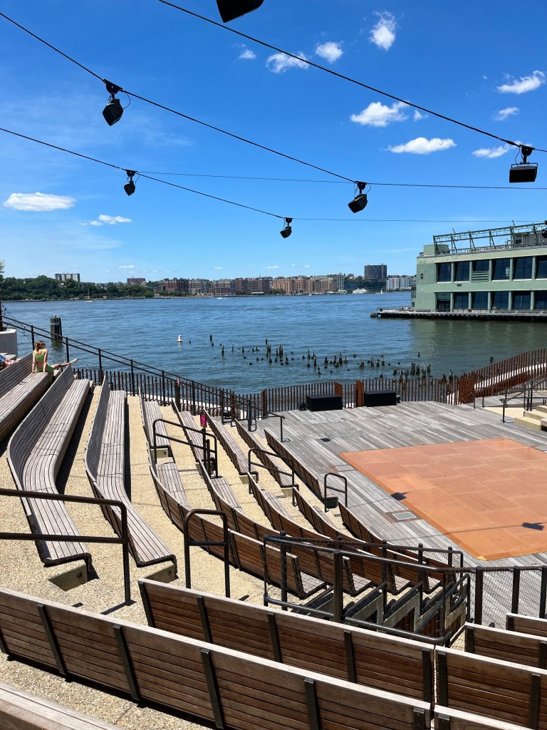There’s not a ton of cover, but you’ll find some tables and huge umbrellas by the two snack trucks. Speaking of snack trucks, the food and beverage situation is much better than I anticipated. I spied a lobster roll and a vegan banh mi, along with other snacks. The beer and wine selection is also top notch. That said, if you don’t feel like eating there (we needed to get a dose of air conditioning), the park is right across from Chelsea Market and City Winery so you’ve got plenty of options.