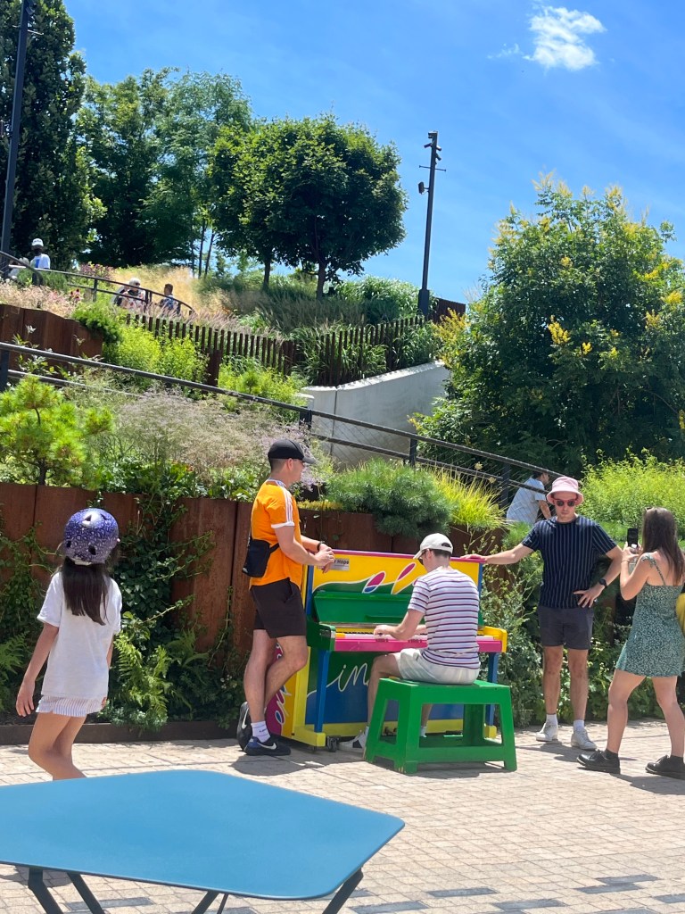 I love that this park is meant for exploration. It was hot, but we made sure to go all the way to the tippy top to get the best views from the lookout point and enjoyed stopping along the way to check out the flowers or chill on a bench. Wednesday through Sunday includes some light arts and crafts programming and everyone (children especiallky) are encouraged to engage with the art. We watched several people mosey up to the piano and play a little something and when somebody started doing a song from Hamilton, we sang along.