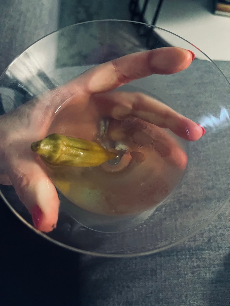 I recently found myself craving a dirty ‘tini but was out of olives. I did, however, have some pickled okra and can confirm that makes for a great dirty martini. I figure I’ll always have one or the other garnish stocked so now I can have my classy cocktail anytime I want.