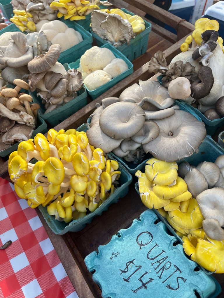 We hit up the Union Square Greenmarket on Saturday – my first time there in years – and I was so impressed with the bounty. I walked away with salamis, freshly farmed cheese, unique mushrooms, and the most gorgeous flowers (enough for two bouquets) for $10.