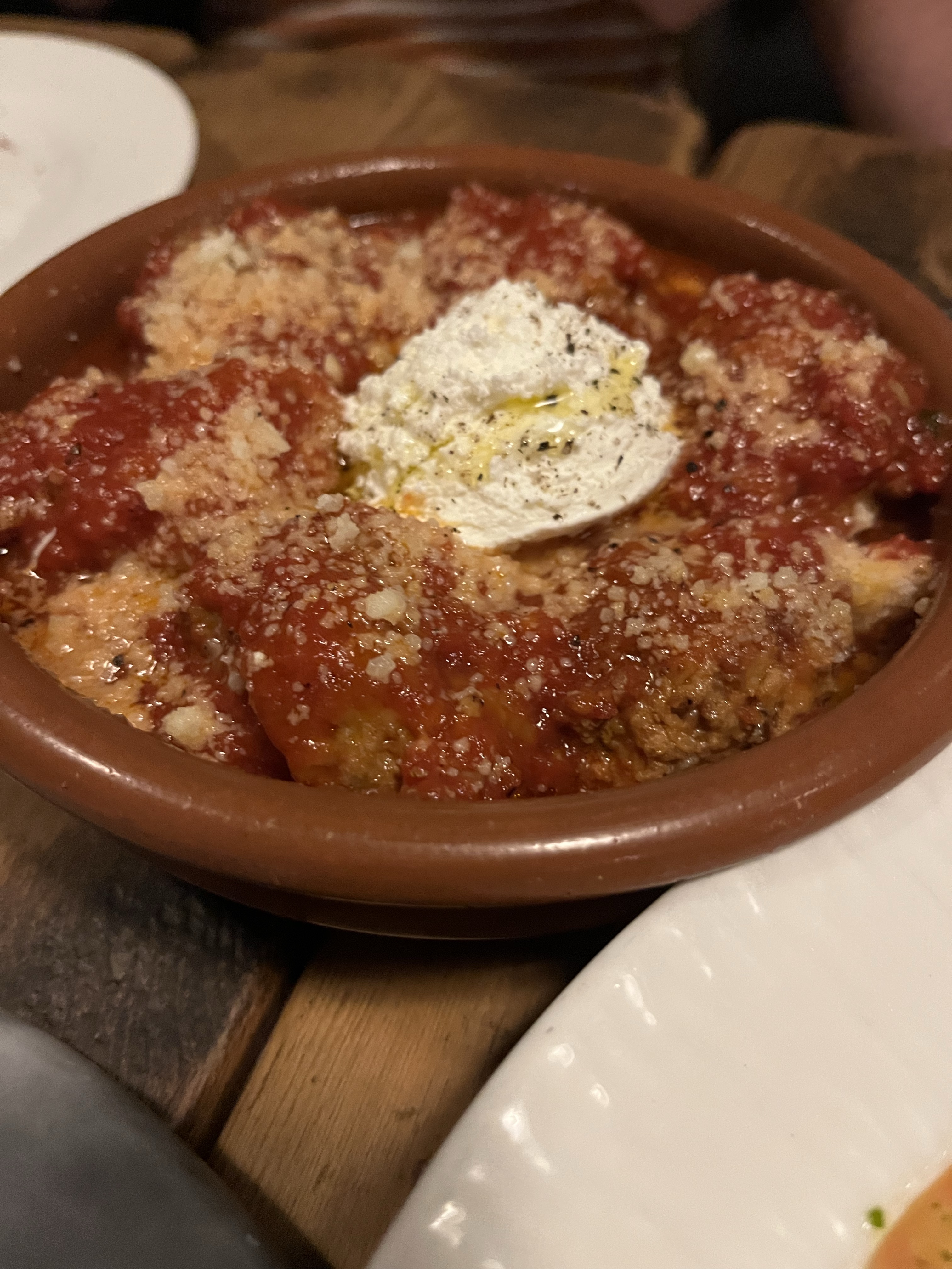 Speaking of butter, I can’t write one more sentence before telling you about the BUTTER TASTING. Yes, like a cheese board, but for butter. “Is butter a carb?” We tried three different butters – something I didn’t know was a thing – swiping their crispy-on-the-outside-fluffy-on-the-inside bread through each. The butter seemed extra creamy and almost took on a cheese-like quality. More restaurants should do this. It reminded me of that scene in Bride Wars where one of the fiances questions: “International Butter Club? You mean you’ve just been sitting around eating sticks of butter from different lands?” I can now say I find nothing wrong with that. After our butter tasting, we ordered burrata with some of those Jersey ‘maters and meatballs with ricotta. Both great. I know that there is a focus on seasonality here so the burrata and tomatoes may not currently be available. Shame.