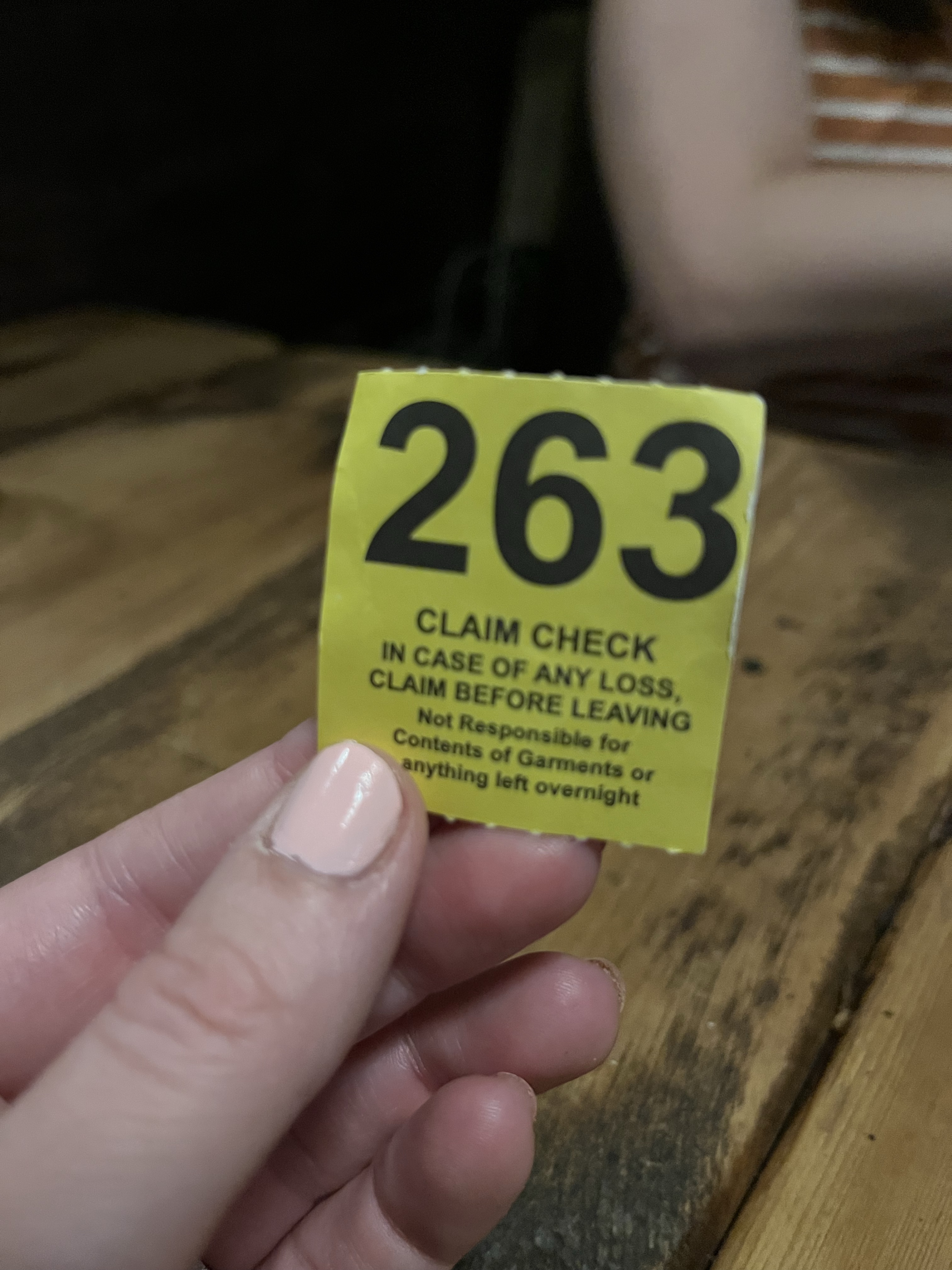 We ordered a panna cotta for desert with [I think] caramel and other yumminess. It was very sweet but also delicious. We had some leftover pizza but since we were sticking around for another drink and dessert, they gave us a claim check for our pizza. I can’t help but imagine a coat check room for pizza.