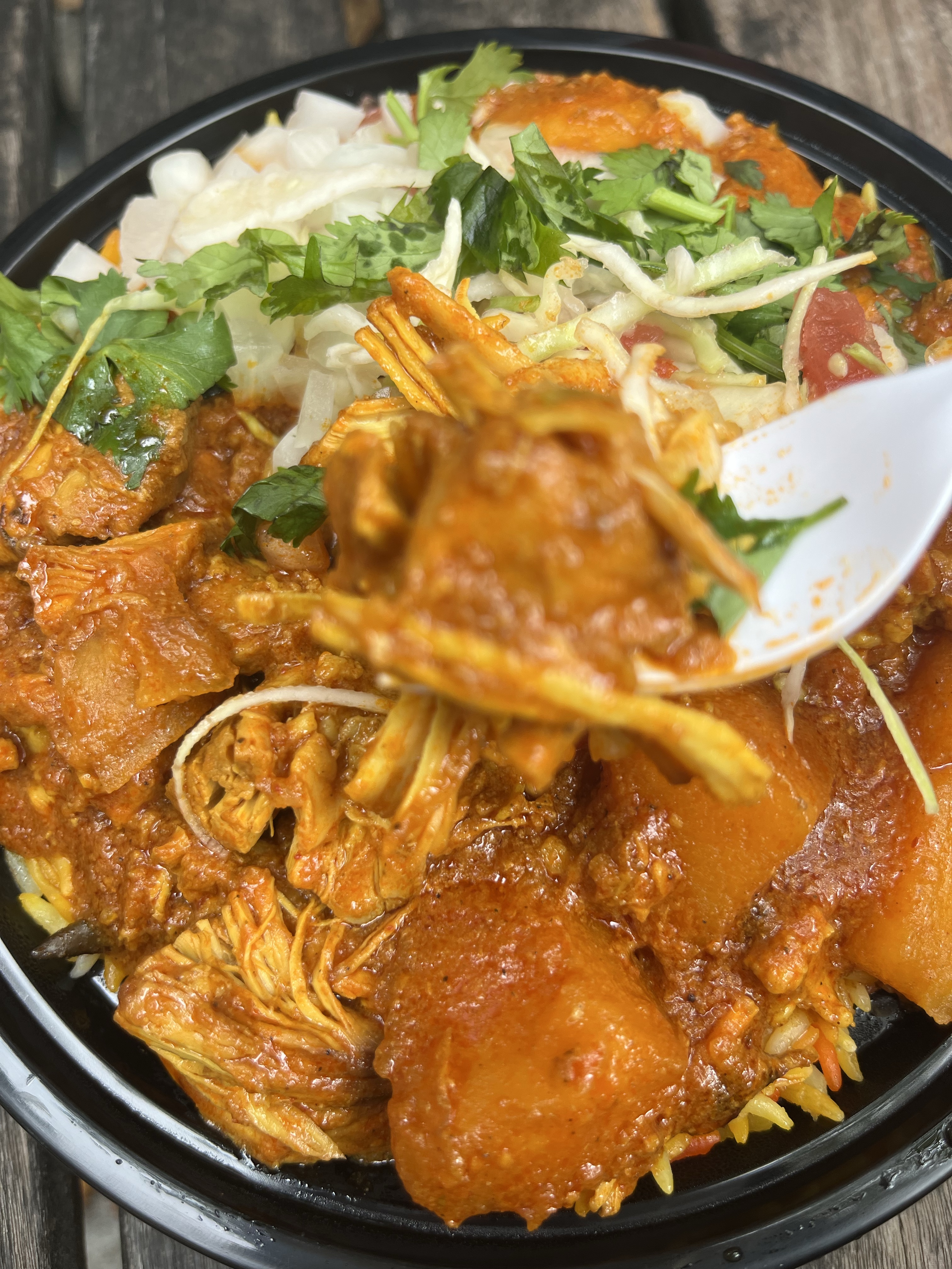 I ordered one of the chicken bowls and it was heavy – I was definitely full after. The flavor was great – just enough spice – and it ate like real homestyle cooking. I could tell how large my bowl was going to be so I held back from ordering the samosa chaat…but I’m still thinking about it. Also good to note that they’ve got several vegan/vegetarian options so this cart is a people pleaser.