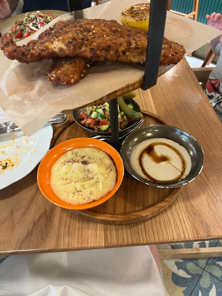 Here you’ll find all the traditional Israeli dishes that manage to feel modern even if they don’t stray too far from the path. How do they do that? Ugh don’t ask questions just enjoy. Also, Finn absolutely loved it. The carrots with all their spices, the creamy labneh, the fluffy bread…we had to take it away. And then we had to take ourselves away because Finn absolutely destroyed their bathroom with a massive blowout and we had to walk him 2 miles home, shirtless like the country boy he is, because the spare onesie was too small.