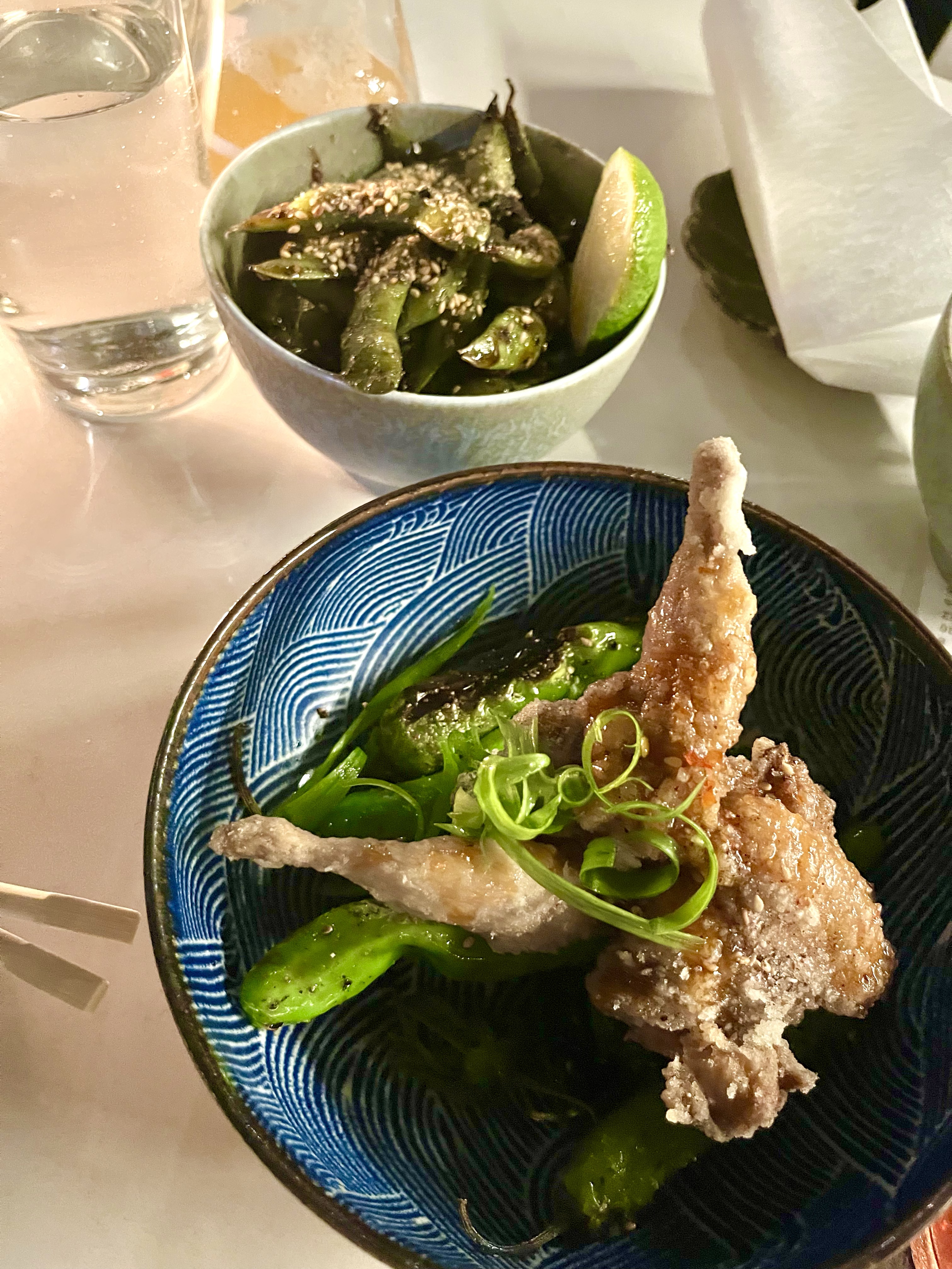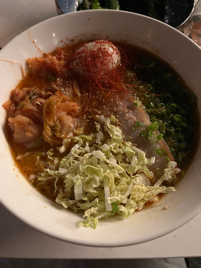 We started with a trio of appetizers. There are quite a few sharable options on this menu so it’s nice to go with a few people so you can share. First we got the edamame, which had a lovely bourbon tamari glaze – a really nice spin on the standard starter. Next up we got a fried chicken and shishito special along with those wagyu cheeseburger buns. Both were very good but I don’t know if I’d call them standouts. My ramen, however, was a major standout. I got the spicy pork in kimchi broth and it was incredible. I would go back for this ramen in a heartbeat and in the current freezing NYC weather, I find myself thinking about it often. And with specials popping up on this menu regularly, it’s worth it to regularly return.