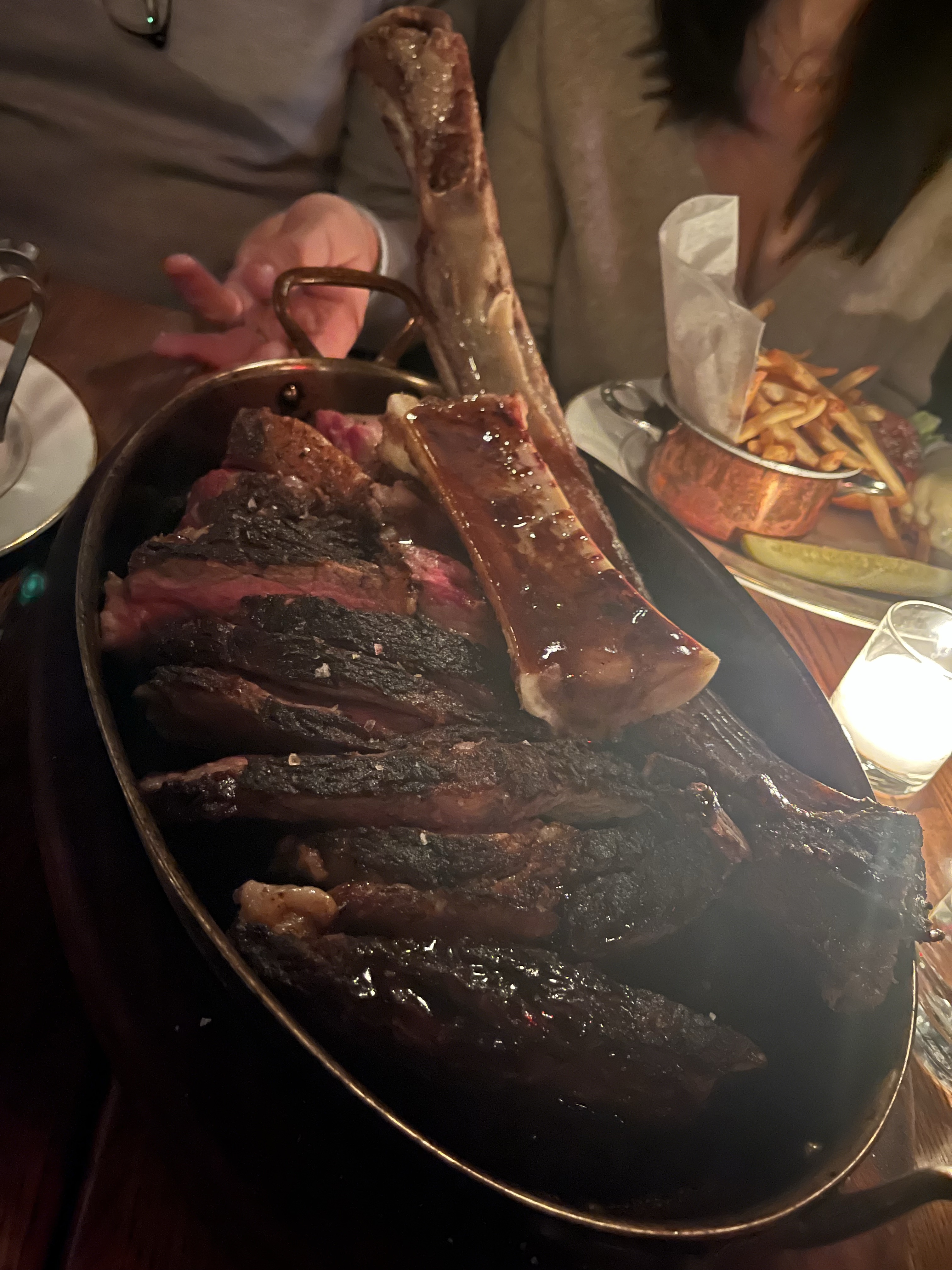 We split the escargot and ceasar salad among the four of us. For the mains, the boys went in on the steak with the most massive marrow bone. I love a good marrow bone. I got the tartare, which was topped with the most perfect little quail egg. The menu is entirely traditional French bistro fare and, based on the items we ordered, I can say it’s very well executed.
