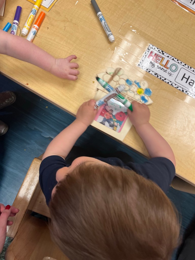 Like I mentioned, I stopped by Finn’s school on Friday afternoon. They invited moms and mom figures to spend an hour with the class for an art project in honor of Mother’s Day. I always see the great art he churns out and it was fun to actually participate. I also loved watching him interact with his classmates and see which activities really capture his attention.