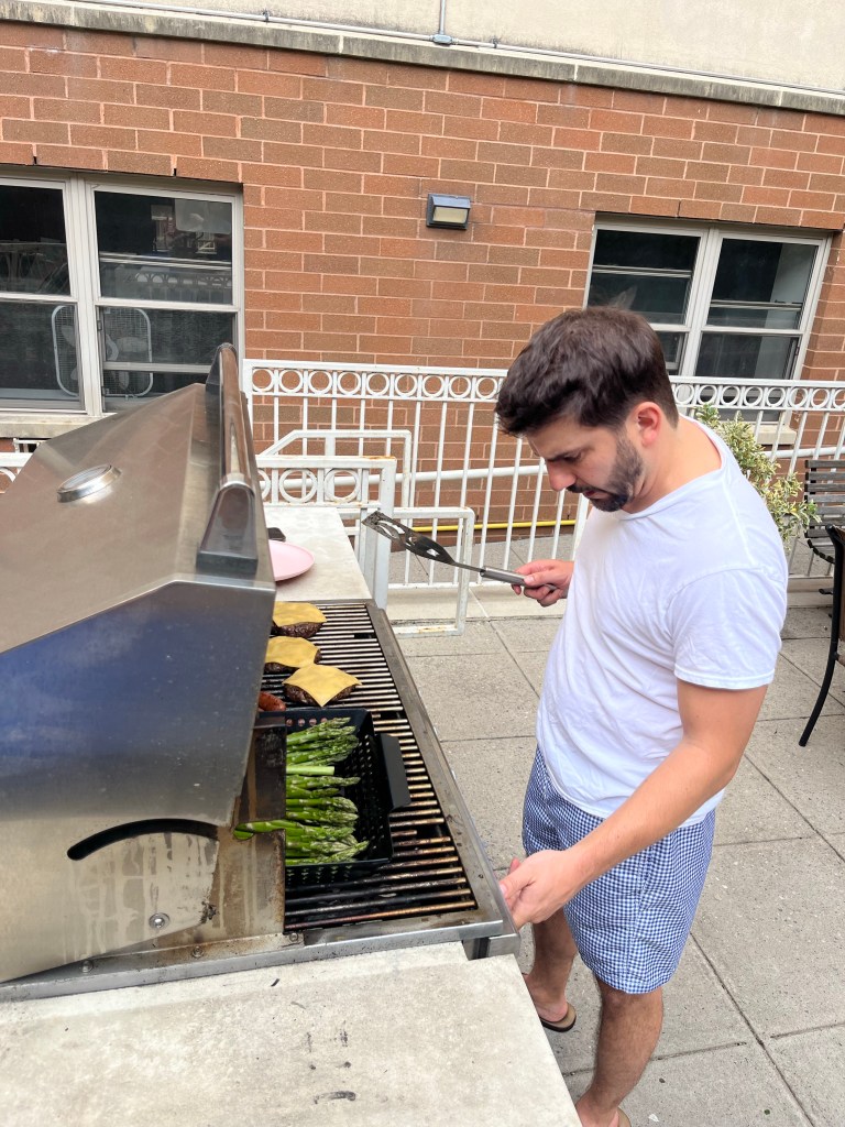 All I’ve wanted to do for the last month is grill with friends. Unfortunately, weather or other plans kept getting in the way. I was thrilled the weatherman was very wrong when it came to Saturday’s forecast. Matt, Karina, their boys, and Smitty came over for burgers, sausages, and wine in the courtyard. It felt somewhat hectic with kids running around all over the place (resulting in Finn sustaining his first real boo boo), but I still absolutely loved it, even the craziness of it all. I must have more grilling days.