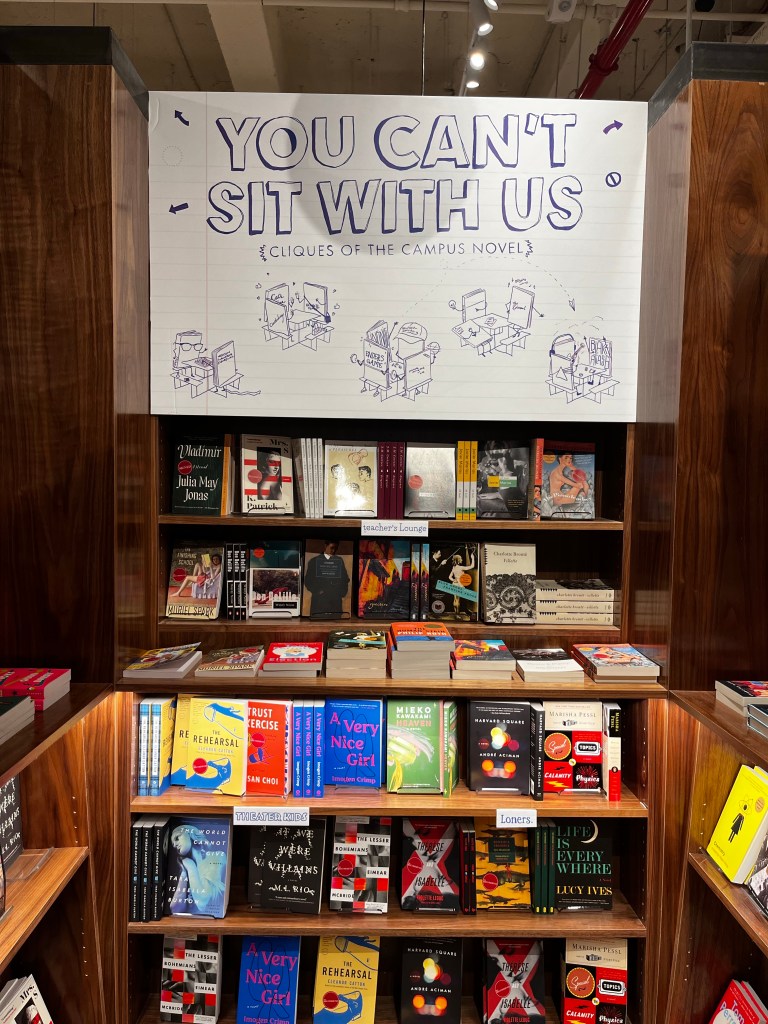 I didn’t even realize that McNally Jackson was moving, but the iconic Soho bookstore did just that at the end of March, apparently. The good thing is they just moved a few blocks up on the same street. No more café, but it’s a really beautiful (and tall) space with a very nicely designed children’s space. I always love a themed section and this one really spoke to me. I once participated in a discussion about those book themes that make you grab a novel no matter what. Some people gravitated toward friends-to-lovers stories; others like anything with fae. Me? Well, if a book is dystopian YA, takes place in the Lowcountry, features an arranged marriage, or features a bookstore, I’m in. Probably my number one favorite theme, however, are books that take place in prep/boarding schools. This could have a magical element like “Harry Potter” or “Ninth House;” it could be contemporary fiction like “”Prep” or The Gifted School;” or it could dip into mystery territory like “I Have Some Questions for You.” I was thrilled to see an entire setup at McNally Jackson devoted to my favorite genre.