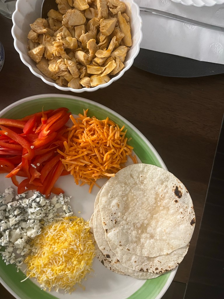 I’ve been craving buff chick lately and finally decided there’s no reason I couldn’t have it for Taco Tuesday. Lets go crazy. I cut boneless skinless chicken breast into bitesize chunks and then simmered in buffalo sauce, turning frequently til cooked through. I served it with all the fixins (including light sour cream, not pictured) and it really hit the spot.