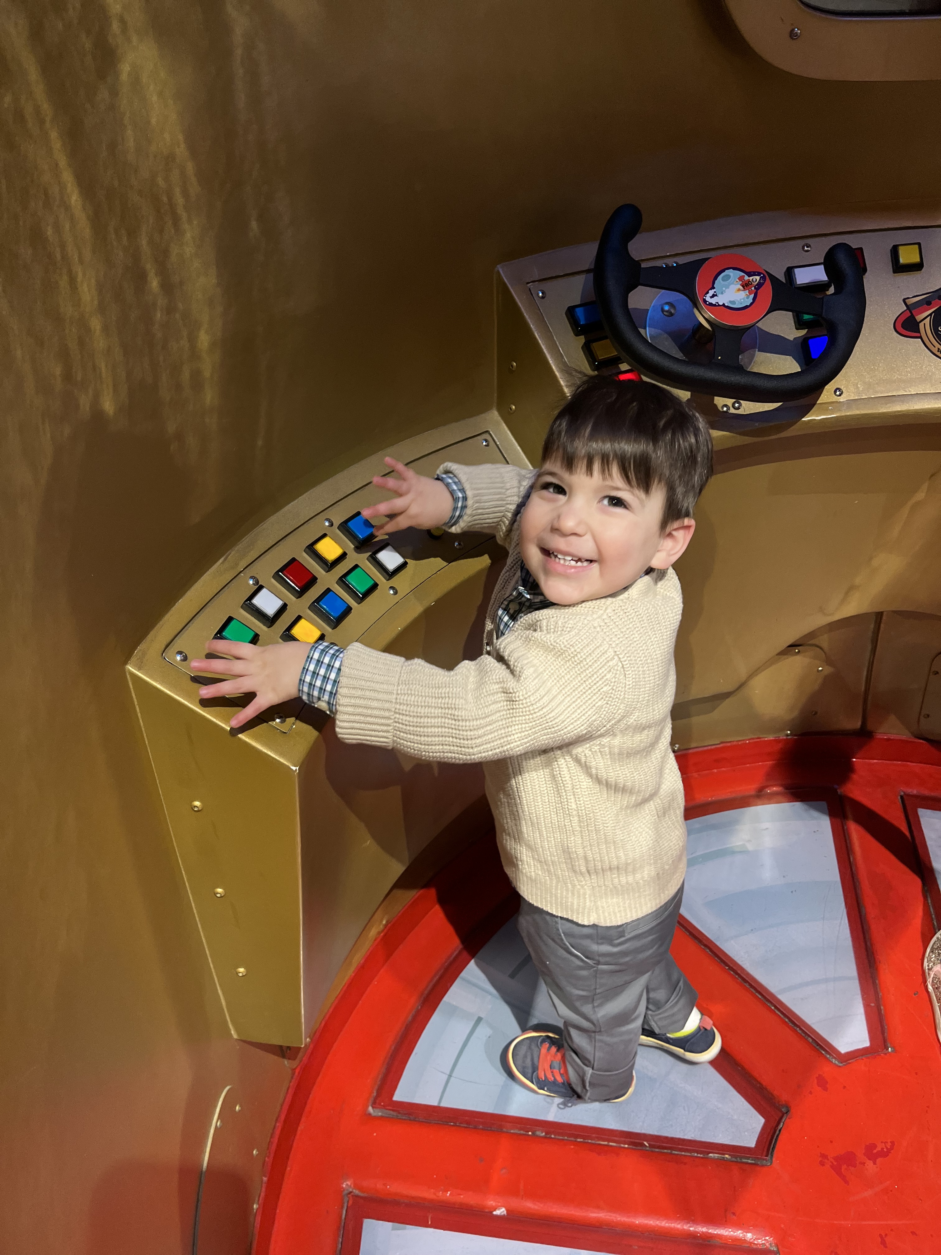 I’d never been to FAO Schwartz since they moved (and I think I only went to the original location once) but Richard and Lindsay were itching to take little Magnus there after our group brunched. Since holiday tourism has died down, it wasn’t quite so insane, though my beau will tell you the crowds were still a bit much for him. That said, it was a great place to bring a toddler to kill some time. There is soooo much stuff there and toys that suit every sort of interest. We spent over an hour just running around looking at everything, staying warm as the snow flurries threatened to approach. While Finn loved seeing all the “buddies” (aka stuffed animals) and candy (even though he didn’t even know what the candy was), it was the rocket ship that really stole his heart. My Albert Otto Astronaut-o was in heaven with all the buttons and I eventually had to drag him out of there.