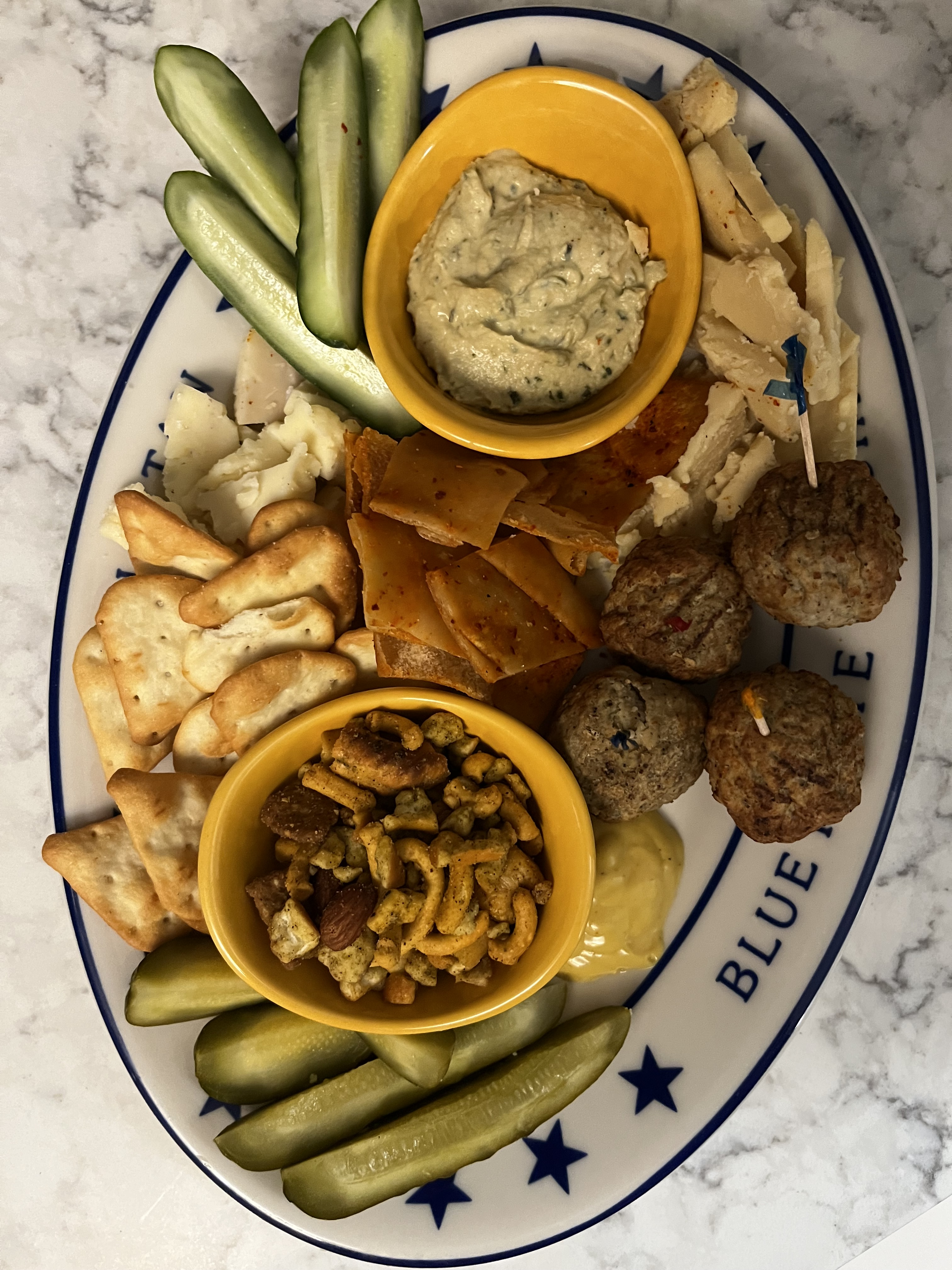 Albert was feeling a bit under the weather on Sunday so I downsized the meat and cheese plate I prepared for the Sunday-that’s-like-a-Saturday of a long weekend. (Don’t worry, I also served a flatbread pizza in addition to this.) The star of the plate was definitely the hummus and pita chips from TAiiM Shack Mobile, a newcomer to the Morningside Park farmer’s market. I got the basil hummus and Mashiseo-seasoned pita chips and both were outstanding.