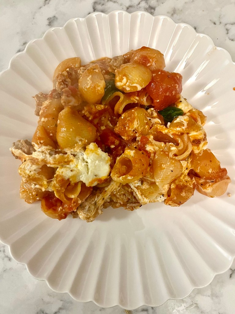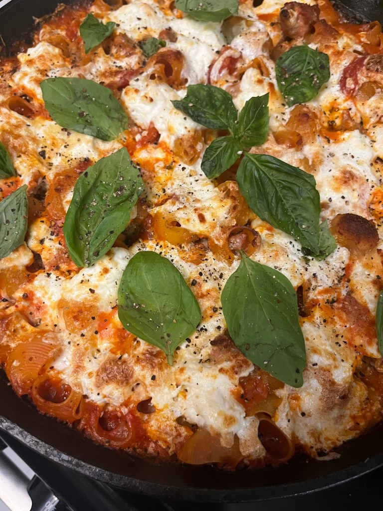 Lasagna is one of my favorite dishes and this gives off real lasagna vibes, especially because I make my lsasagna with sausage. Except here’s the thing: it’s easier than lasagna. It’s all in one pan so you don’t have to worry about browning the meat here, boiling the pasta there, and assempling it all in another spot.