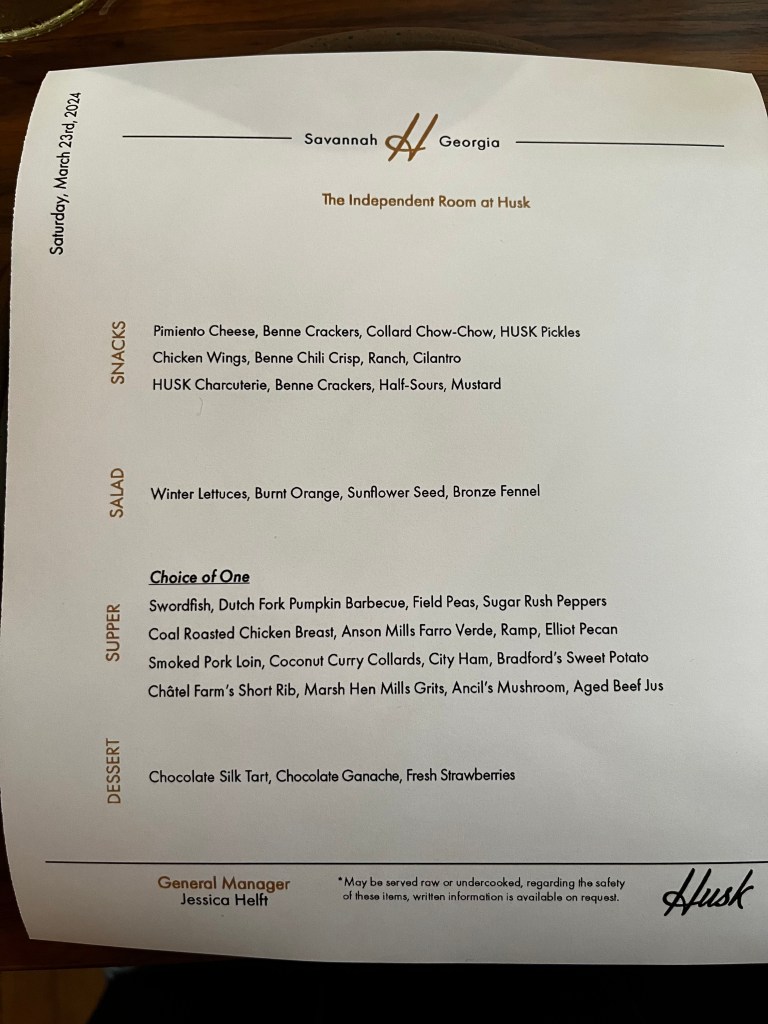 Local local local. That’s the name of the game. It’s Southern cuisine that’s elevated without being “funky,” which means strong smoky and coastal flavors that will speak to any Lowcountry native. The ingredient list and accoutrement descriptions may sound complicated but they’re fresh, familiar, and celebrate (rather than camouflage) the flavors we know and love as Savannahians. I always love when a restaurant is hyper aware of using local and seasonal ingredients. In the case of this event, we didn’t even know what the menu was going to be until the day-of because the chef needed to hit up the farmer’s market and check with the fish guy. My Mom simply ensured there was an option for every taste palate and they delivered.