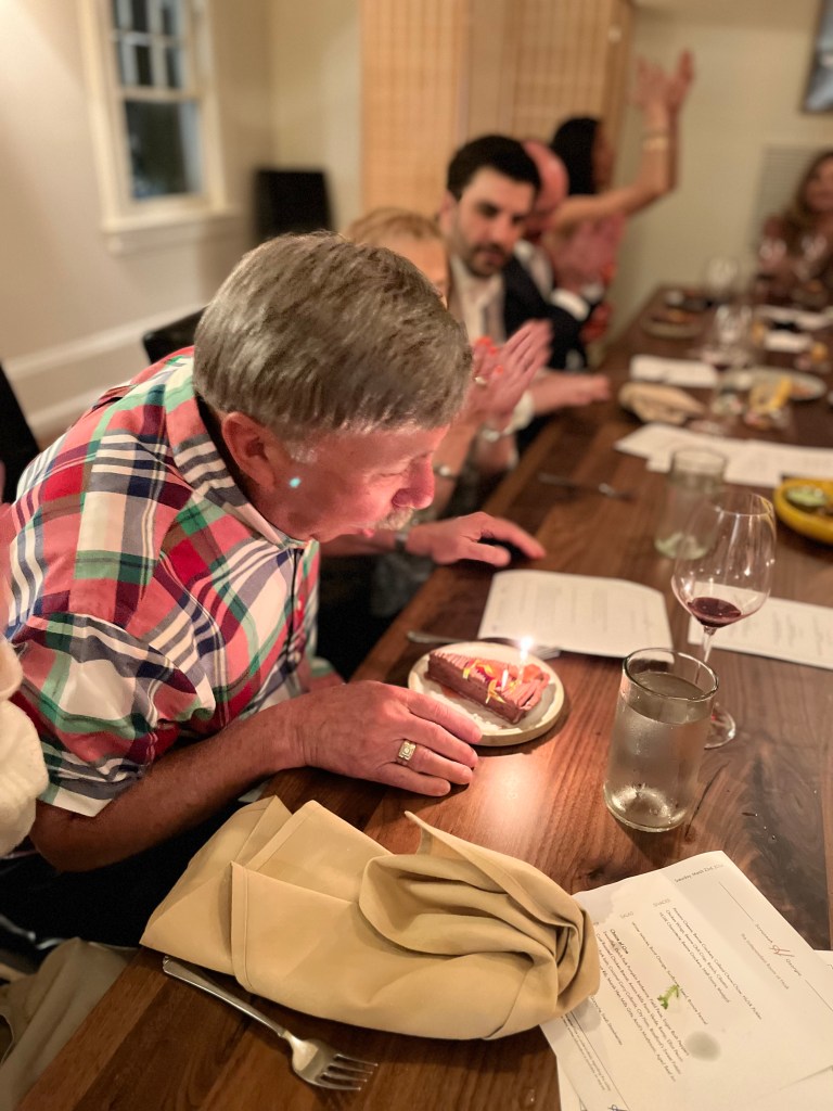 When it came to my order, I started with the Grey Gardens cocktail, surprising myself by getting something with gin because I’m really not a gin fan. But I liked the preparation with Earl Grey, blood orange, and honey and enjoyed it enough to order a second. I surprised myself again by getting the chicken for my main. When I was deciding between two, the server suggested I let the sides guide me and, well, that one had ramps so it was no contest. It was packed with herbs and had a bit of a bite to it. Tasted a bite of Albert’s pork and wish I could have asked one of my parents’ friends for a taste of swordfish and short ribs. Also, the portions were huge, which is not something I usually find myself saying at a fancy restaurant. And then there was the dessert. A chocolate tarte with ganache and strawberries that screamed Jerome. A rich dessert like this is right up my Dad’s alley and even though I typically don’t have much of a sweet tooth, I couldn’t stop digging into the decadant treat that was dense in the best way with just enough fresh fruit cutting through so the chocolate wasn’t cloying.