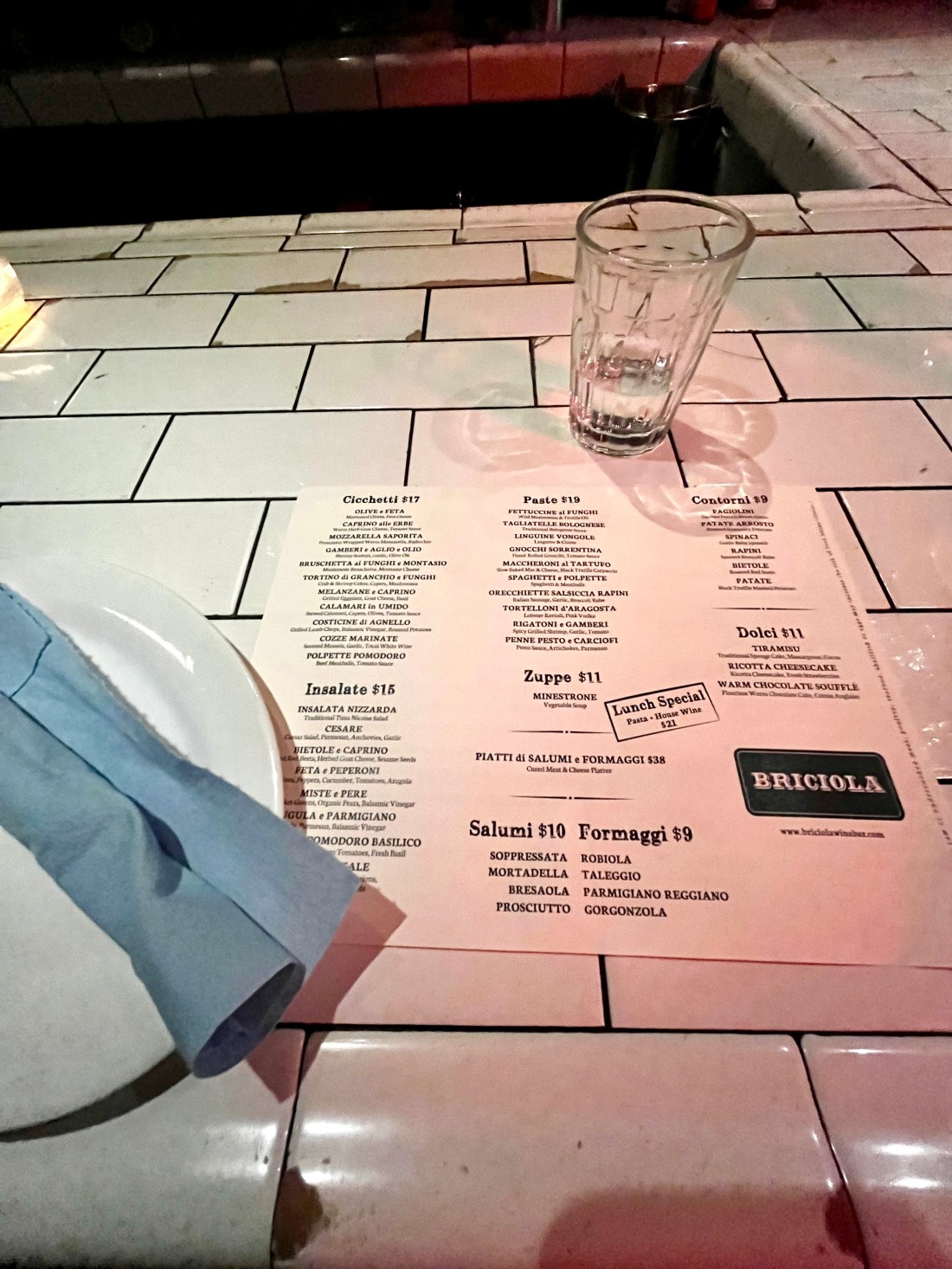 If you’re looking for a pre- or post-theater drink or snack (or full meal, your call), Briciola is a great choice. The two narrow, adjacent rooms are rustic and cozy, which means it’s perfect for a date night or catch-up with a friend. Basically, it’s your standard Italian wine bar (cocktails too, don’t worry), but sometimes that’s exactly what you need.