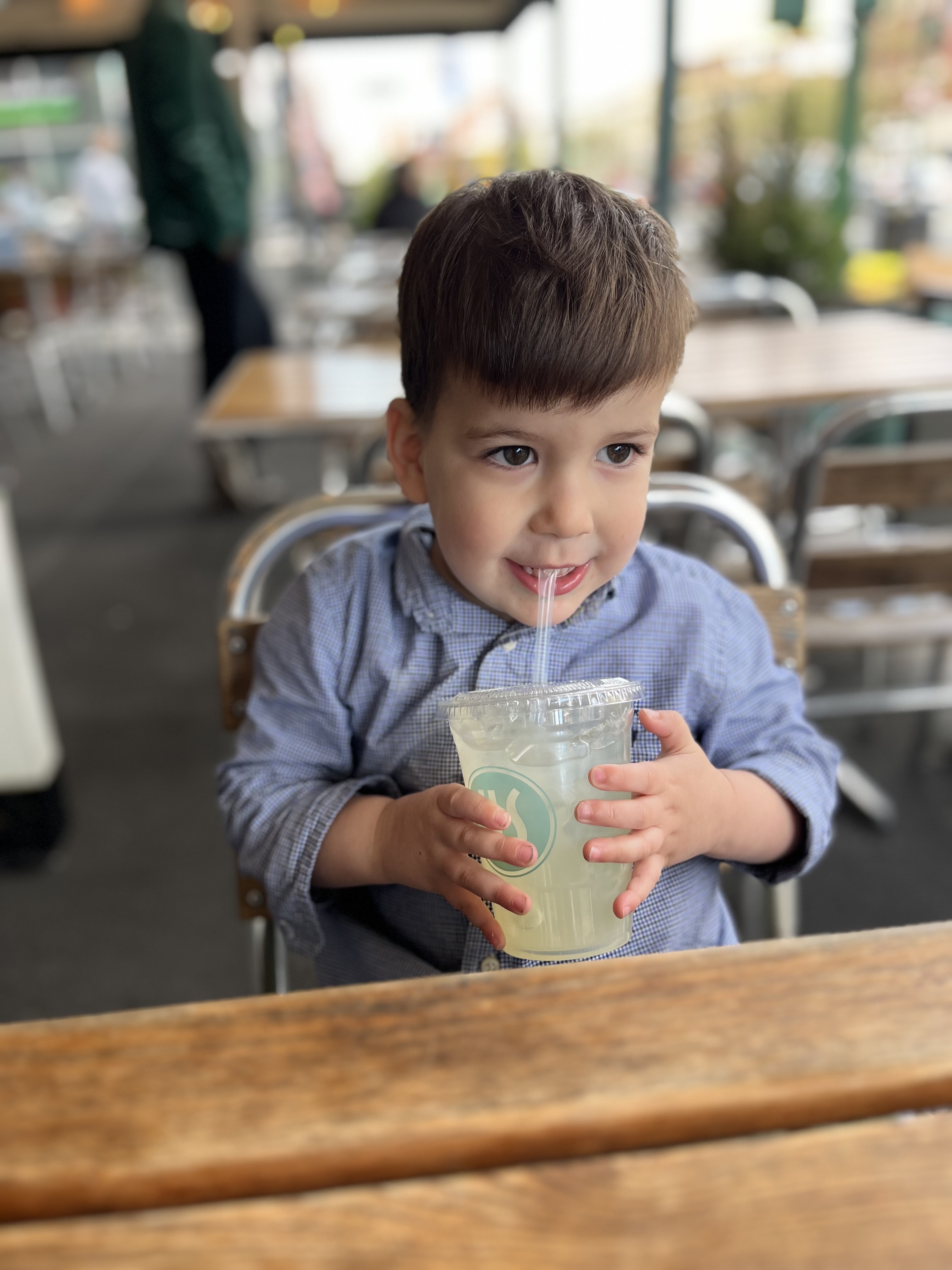 Finn got his first taste of lemonade. We recently stopped at our fave, Harlem Shake, for a treat of a weekend lunch and gave Finn an extra goodie – pretty much his first taste of anything not water or milk. He got a lemonade in all its sweet glory and really sucked it down. Don’t you know that on Sunday when he saw Harlem Shake across the street on our way back from the grocery store he begged to go in, saying “I want lemonade AGAIN.” It had been a full week but he doesn’t miss a beat – he remembered his first taste of the good life. On our walk back home he was pretty much the happiest boy ever.