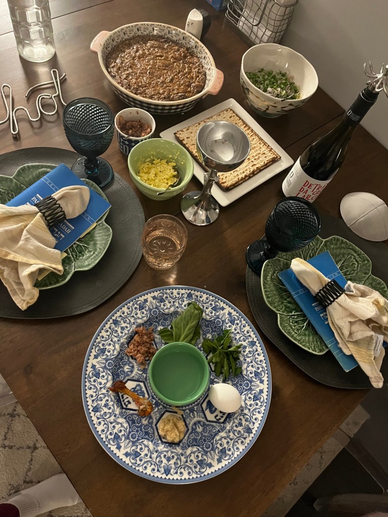 We’re deep into Passover now and this year, the holiday takes on a whole new meaning. While Passover commemorates and celebrates the Jewish people’s escape from bondage in Egypt, hostages are still being held by Hamas. They deserve to be free. Beyond that, we are watching expressions of protest explode across college campuses – the country’s most elite universities – that are no longer peaceful. I can respect the right to protest geopolitical conflict, but I must condemn when that turns into violence targeting members of a *religion* because the protesters believe people of that religious minority represent the conflict. It is in no way the same. Protesting a country’s politics is not the same as calling for “death to the Jews” or holding signs pointing to Hamas’ [a terrorist organization] “next target.” [nearby Jewish students] The Jewish people are spread out across the globe; while almost all feel a connection and need for Israel, they do not represent its government and should not be blocked from the steps of their university in the same manner of the Nazis decades ago. All of our Jewish friends left the city for the holiday/spring break this year and Finn goes to bed by 7:30 so it’s not like we were going to rage at a party seder like we often do. Still, it was extra important for me to host a seder (both of them, actually) this year for just myself and my amazing Catholic ally husband. I am proud to be Jewish and will remain so. Next year in Jerusalem.