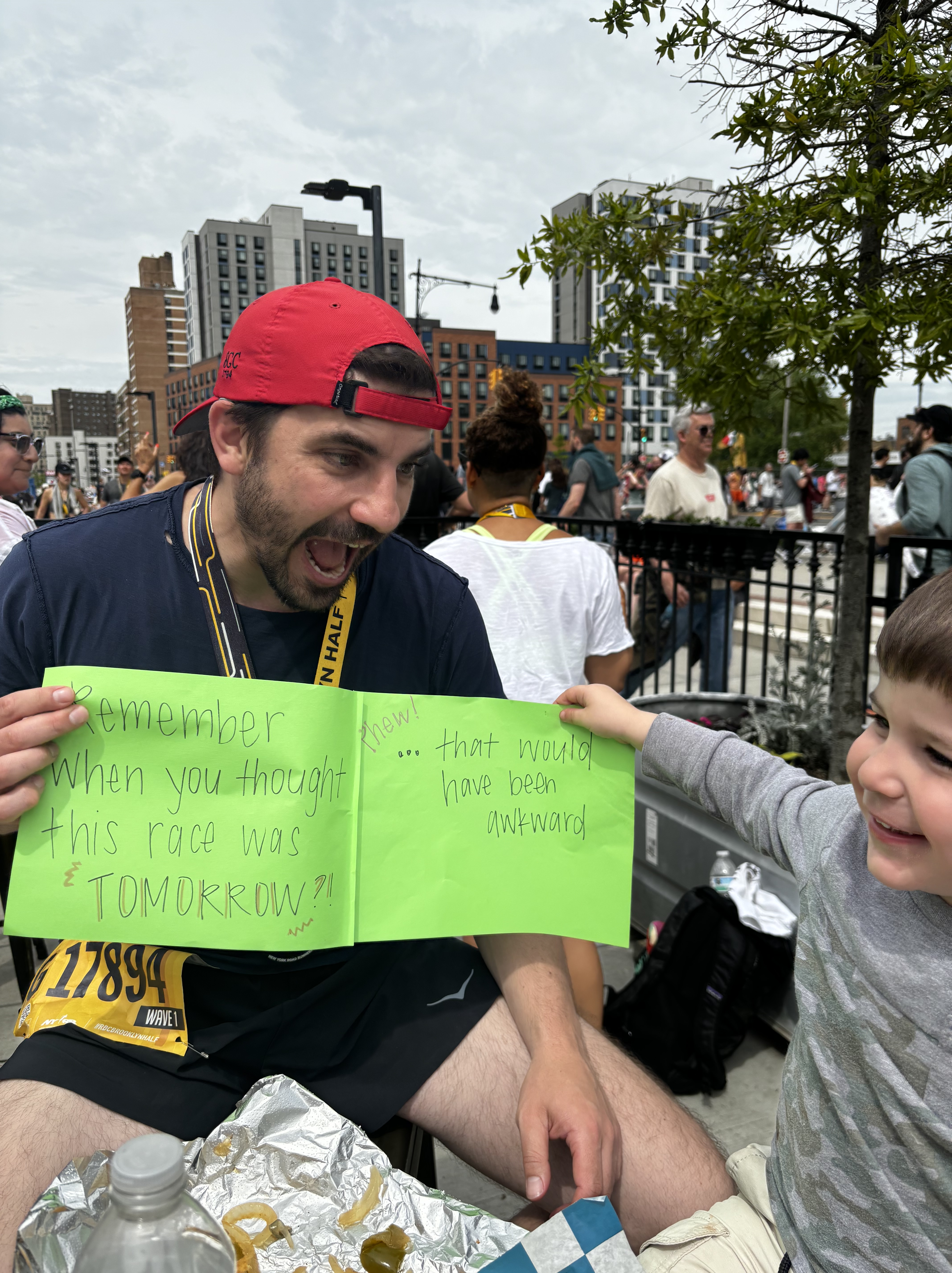 On Sunday, my beau ran the Brooklyn Half. Running 13.1 miles seems impossible to me…doing it in 1:47 minutes is downright unfathomable. I’m so proud of him and while he somehow ran right past us without us spotting him, V and I had a blast cheering him on. He had spent weeks thinking the half marathon was on Sunday and only realized it was happening on Saturday about 15 hours beforehand. That was a close one! The race ended on the Coney Island boardwalk, which may just be the coolest finish line ever. After grabbing a celebratory beer and hot dog, we took Finn to Luna Park for some amusement rides and his first taste of cotton candy. After all that, both Alberts fell asleep on the car ride home – quite a successful day.