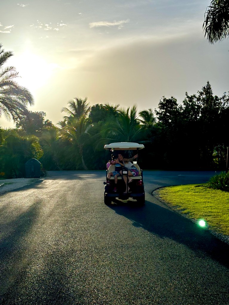 Since Finn had pushed through without a nap, he was very much done. We hopped back into our golf carts (the resort is quite expansive so you need to drive everywhere – our villa came with three golf carts) and headed back for bed. Well, bed for him; for me it was wine + book time.
