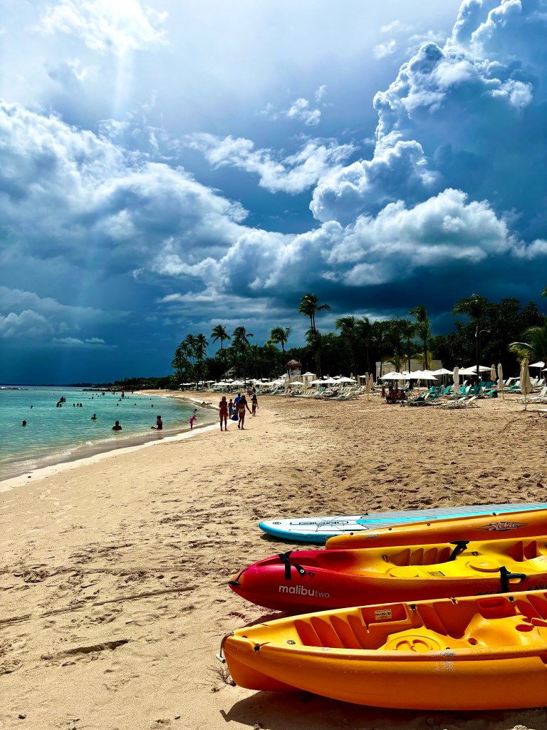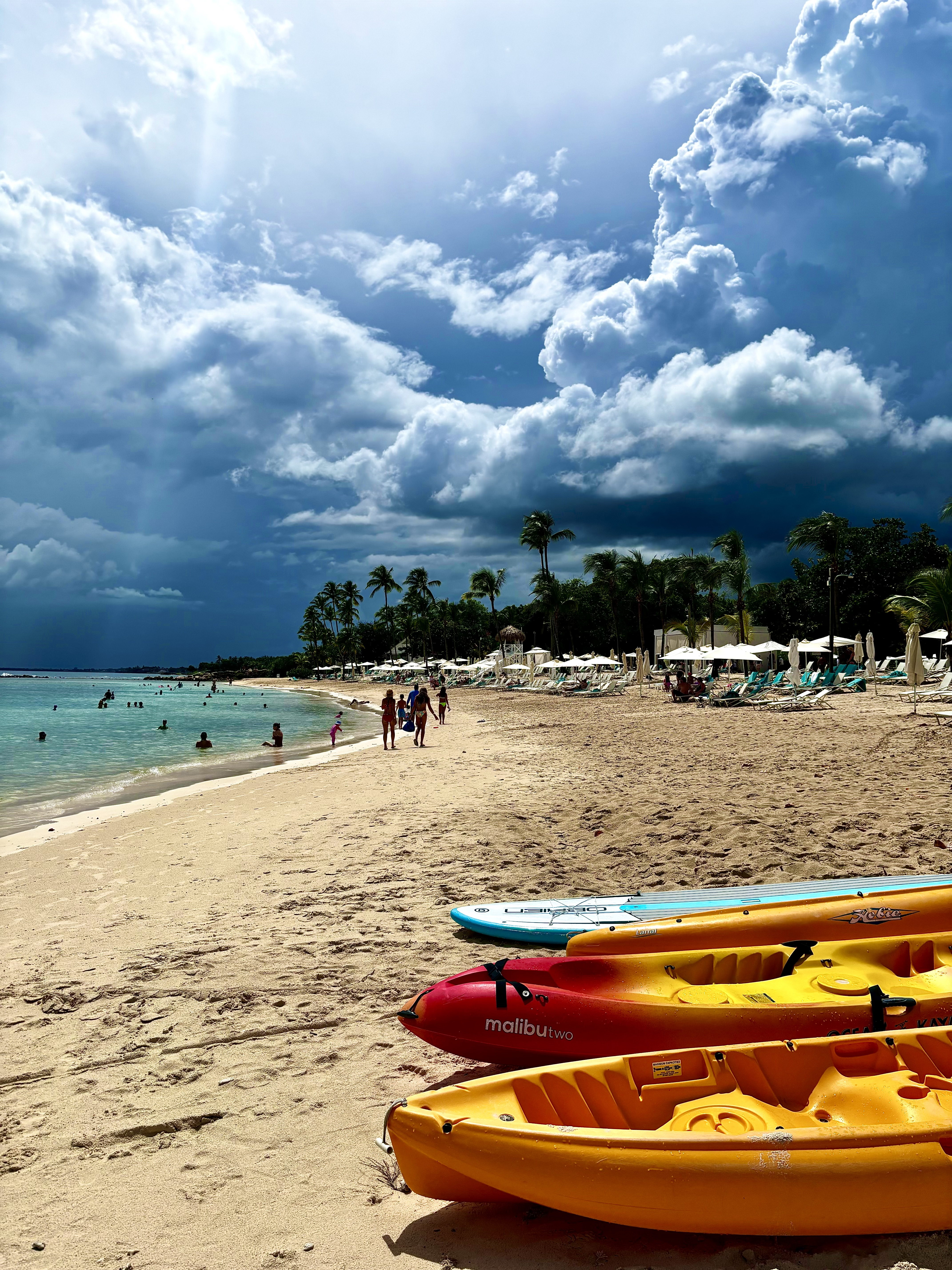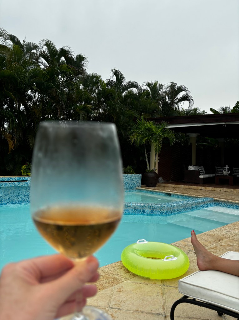 This was the day the menfolk were playing Teeth of the Dog so when they left, so did we. While we had a pool at the villa, we wanted to check out the other spots so we headed to the resort pool at Minitas Beach. The weather took a turn and it started POURING. It made it a bit difficult to enjoy the beach/pool, but we certainly made do every time the clouds broke up. We got popsicles and food from the food truck before heading back to the villa so Finn could take a nap, I could have an afternoon glass of rosé, and we could all get ready for dinner.