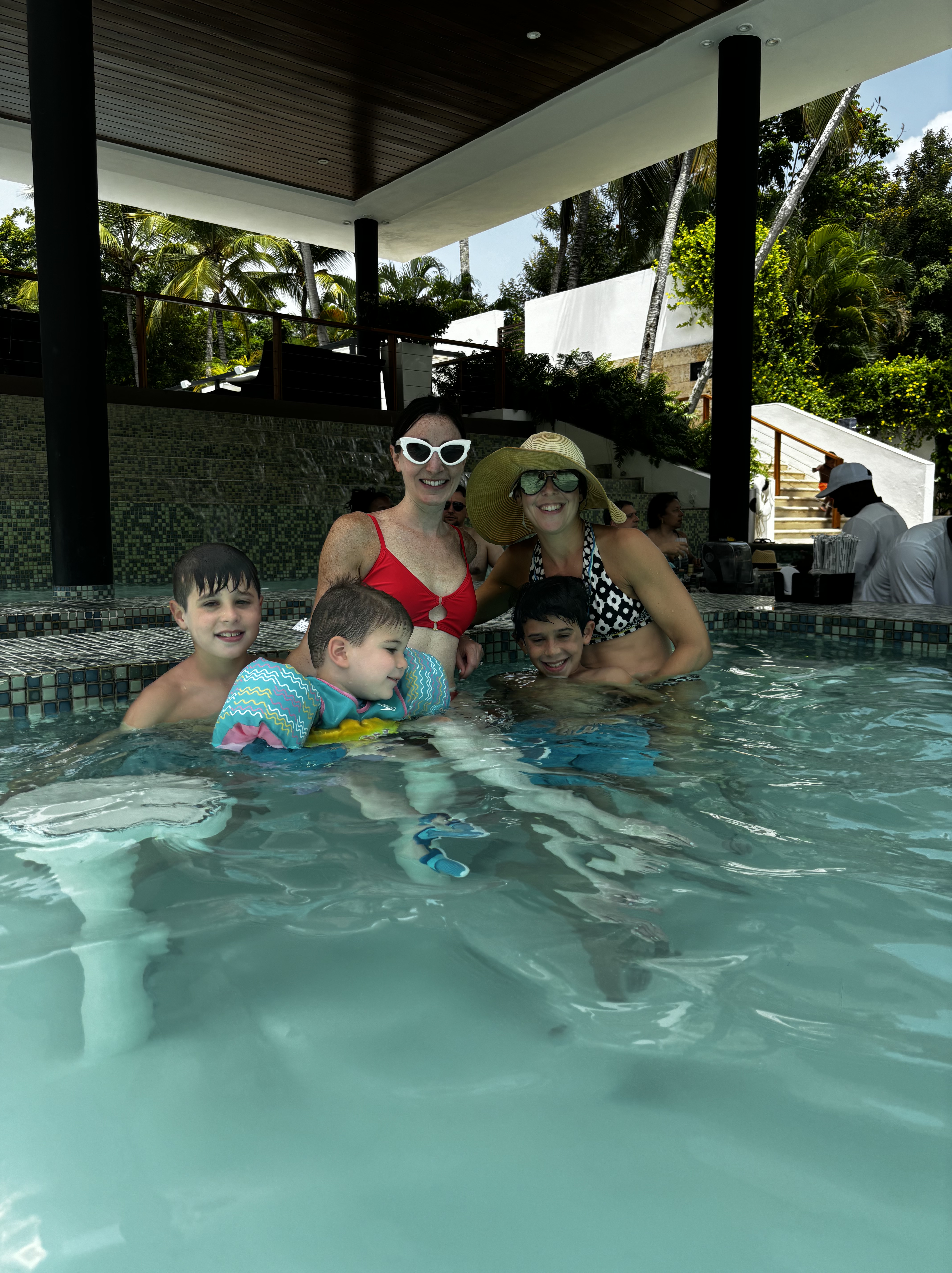 Actually, I should say pools. There were several, including a massive kiddie pool, along with a swim up bar. Since it was almost time to pick up the boys from camp, I texted my Mom and Allison, told them to put on their bathing suits, grab Finn’s floaties and my swim stuff, and meet us there. We grabbed a quick lunch and then hit up the pool for the next hour and a half.