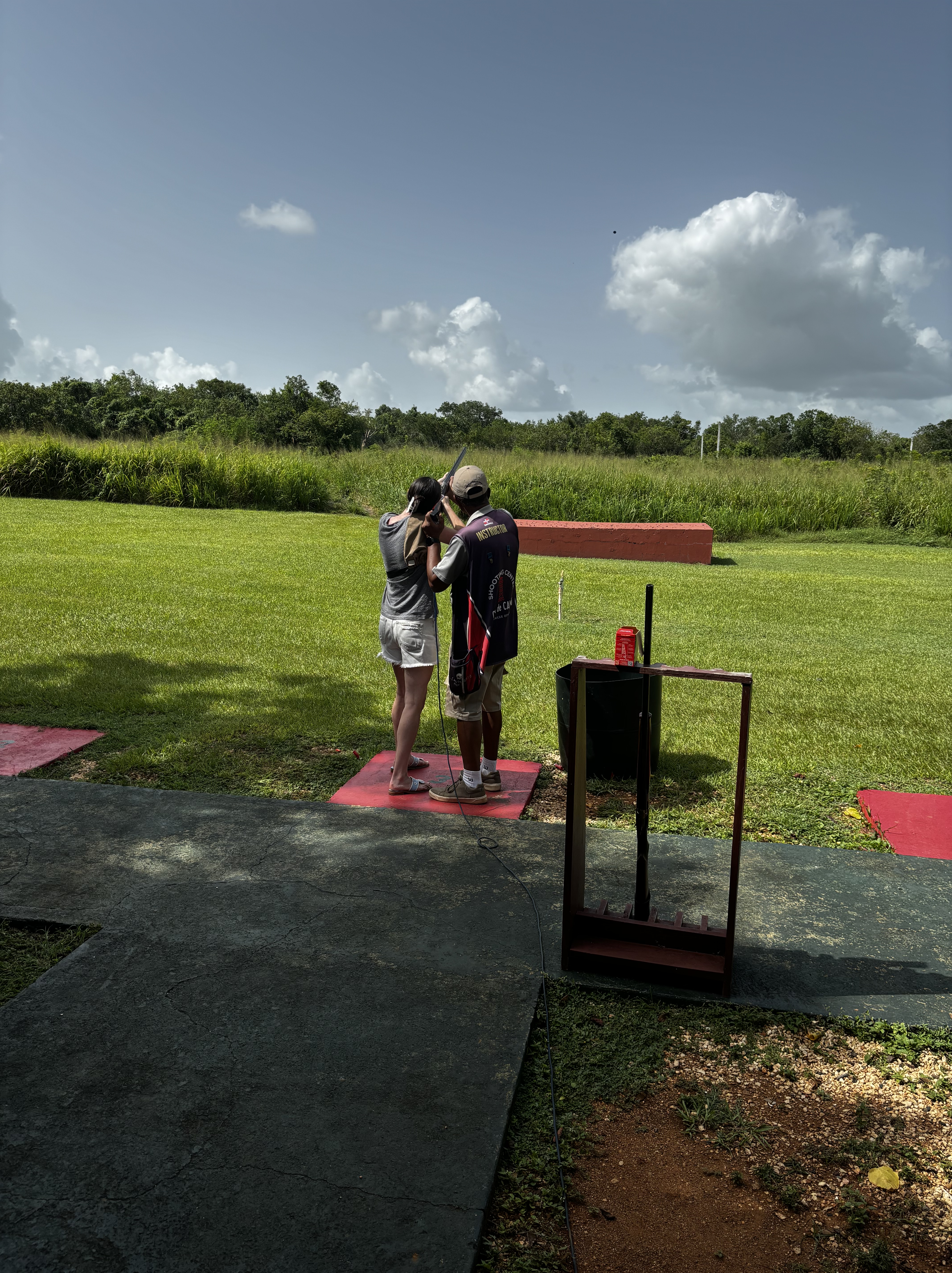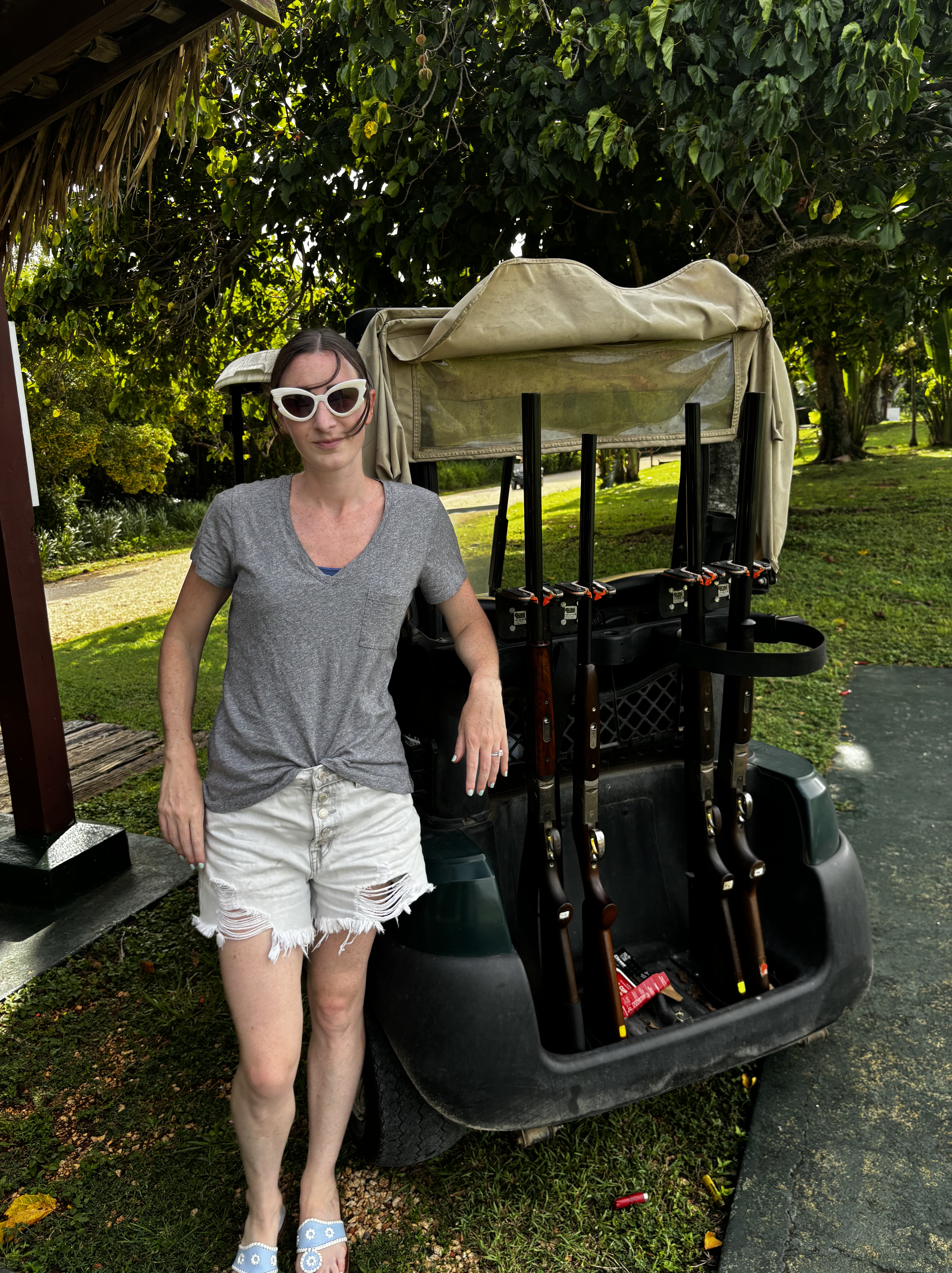 When we got back to our villa, there was enough time for Finn to take a short nap so I put him down just as the men were getting back from golf. Just after they walked in the door, my Dad and brother turned right back around, this time with me and Reed in tow, so we could go skeet shooting. I love that this was an option. Since I can’t play golf or tennis, I loved having an outdoor activity that wasn’t just swimming. Fun fact: I’m quite a good shot.