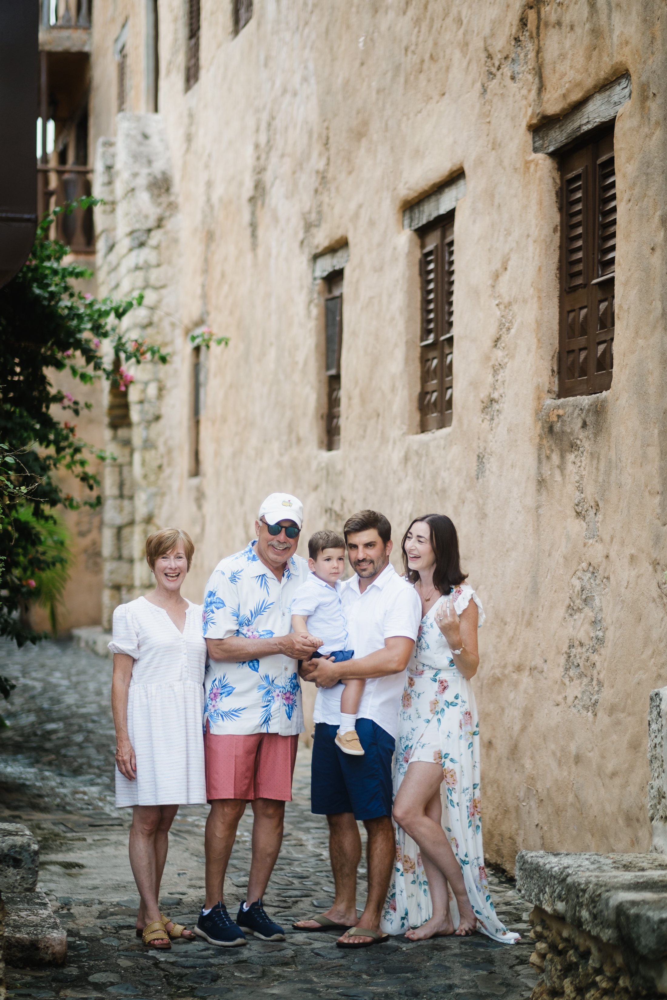 By the time we got back to our villa, there wasn’t time for V to nap so we just started showering and getting ready to head to Altos de Chavon I had arranged for family photos. Altos de Chavon is a replica of a 16th century Mediterranean village – think: lots of cobblestones. Is it strange that such a thing even exists? A little, but it’s actually beautiful and the ampitheater makes for a stunning backdrop for top tier musical talent. It also made for a beautiful setting for family photos. The last time we’d taken family photos was 7 years ago (incidentally, also in the Dominican Republic), but so much has changed since then, namely Finn, who wasn’t even a blip on our radar. The previous photos were beach style so it was nice to do something different. I used Flytographer and the experience was great.