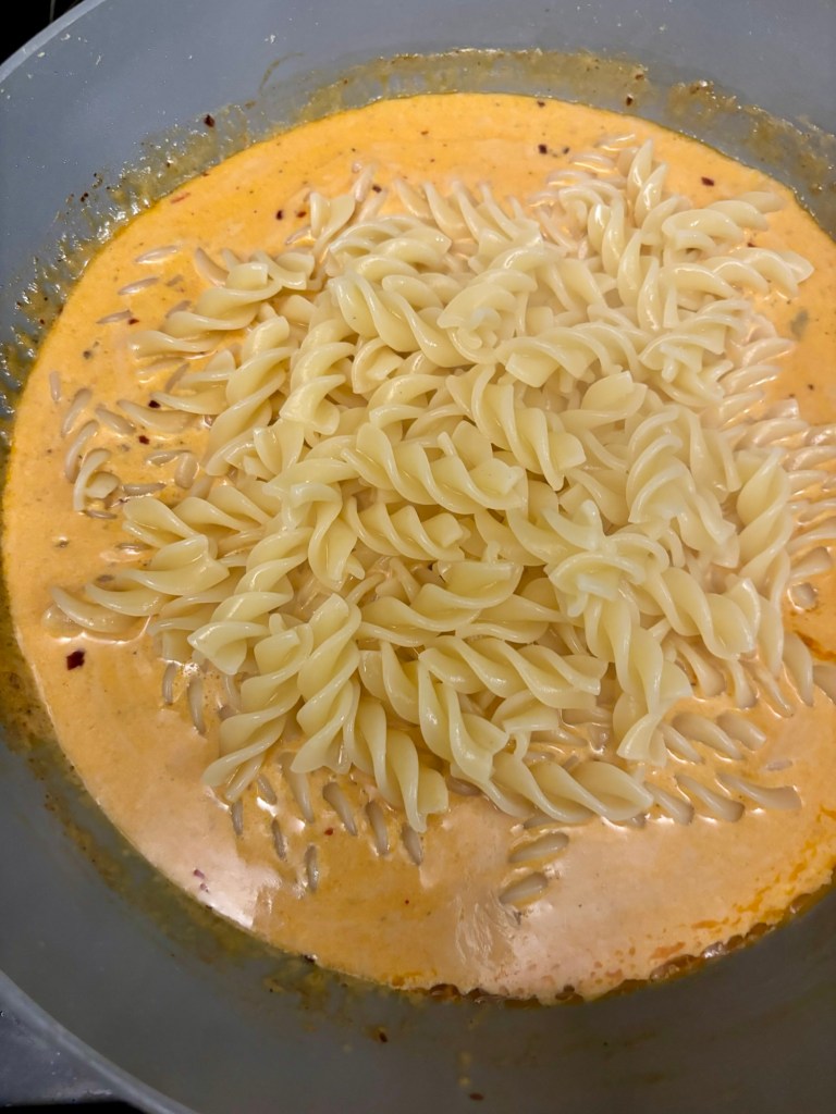 No joke, a simple photo of this pasta on my IG stories received more response than almost anything I’ve posted. And if it looked that good in a quick pic snapped while cooking, you can imagine how great it tasted. It’s only about 5 ingredients and so so tasty. The recipe calls for fettuccini, but I found it worked well with a corkscrew shape.