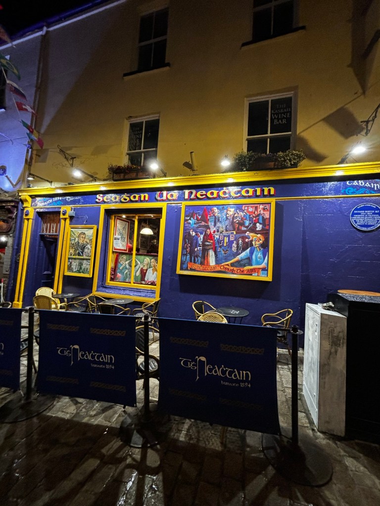 This final night was reserved for MUSIC. Trad music is a thing and it is still very much thriving. We had to see what Ed Sheeran was talking about. We started at The Crane Bar for some very traditional trad music (yes I realize I’m emphasizing trad). While grabbing a drink at the bar, I befriended an octogenarian who moments later took the stage and regaled us with some shanties. It was fabulous. Even on a Tuesday night (when school was out), it was hoppin. After Crane, we made a quick stop in Tigh Neachtain because we heard it’s loved by creatives. We could immediately tell it was a bit artsier and really liked all the nooks nestled throughout. We only left because we were specifically in a music mood and weren’t going to find it there, especially on a Tuesday night in the summer. Apparently Cillian Murphy is a fan. From there we went to The King’s Head, which played modern trad music, which seems like an oxymoron but it worked. Some folks even got up to do some actual Irish dancing. The building is super old (there’s a fireplace from the 1600’s) and the bar owes its name to the fact that the property once belonged to King Charles I’s executioner. There are also ties to the 14 Tribes of Galway – check above the fireplaces for marriage stones from the Martin, French, Bodkin and Lynch families.