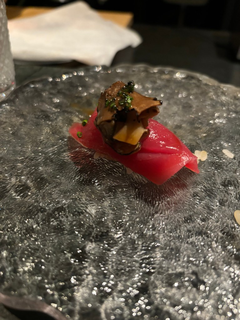 We covered all the fish over our 13 courses, starting with sea bream with sea salt lime, chutoro, yellowtail with shishito, bluefin with shiitake and truffle, and on and on. There was even an uni toast course and a very fatty melt in your mouth piece of tuna topped with caviar. That was all included in the $75. The final course is a handroll and then you can add some specials. Wagyu AND fois gras together as a special? Yupppp. Uni with oyster and caviar? Ok!