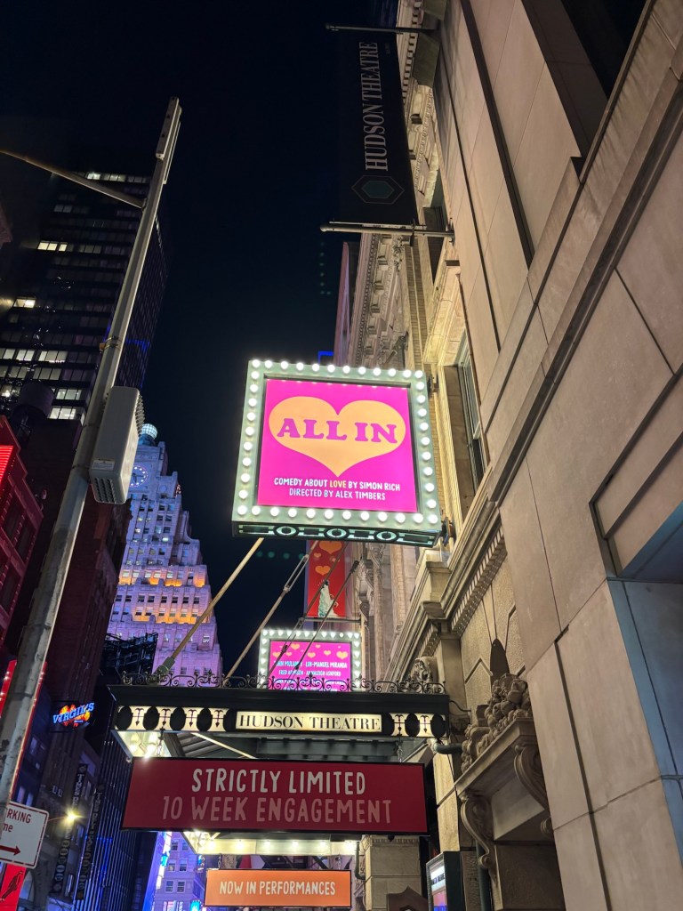 On Friday evening I went to see All In. The tickets were a gift from Santa and meant to be our first February date night. Unfortunately, our sitter canceled day-of and we couldn’t find a replacement. My beau stayed home with Finn and I found a friend who happened to be free. Obviously, I would have loved going with Albert, but this was the best possible make-good. The person I went with was actually a new friend I had never met in person – and we got along! I also spent the hour before the show taking myself on a date at a new favorite spot where I ate delicious food, had some good wine, and made friends at the bar. The show itself was a great way to spend 90 minutes. A rotating cast of four actors (we lucked into a great group) sit on stage and read aloud some of Simon Rich’s short stories about love. I didn’t realize it, but they weren’t new pieces so having read several of his books, I was familiar with all but one story. Some would think that’s a bummer, but as a fan of his work, I loved seeing it in a new format and backed by music.