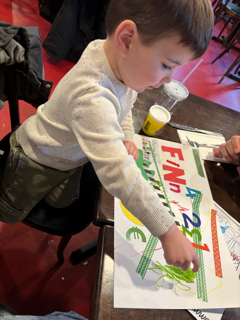 On Monday we did what seemingly every other toddler family in Manhattan did during the day off of school/work: took our kid to the Children’s Museum. V loves it and was so proud of the art project he did while there that he couldn’t stop admiring his work at lunch afterwards. He later said that it was a really great day and that made me so extra happy.