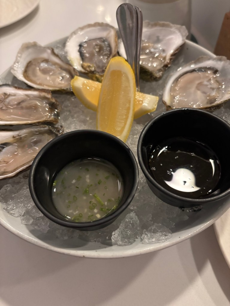 On one such “date,” I decided to start with a half dozen oysters, and they were fabulous. And the accoutrements – hey now! Elderflower ponzu and broccoli mignonette. So good, especially that broccoli mignonette. And the oysters themselves were nice and clean. Will definitely keep them on as part of my go-to order (vs. one extra handroll).