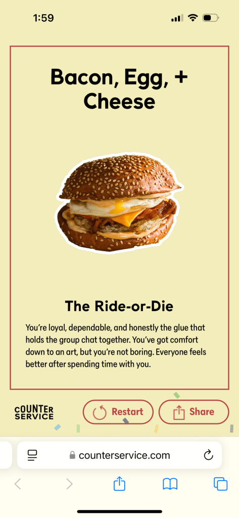 It may be a serious sandwich, but they don’t take themselves too seriously. When I scanned that QR code, it led me to a cute personality quiz that proclaimed me to be a BEC aka a ride or die. Honestly, I think they’re spot on.