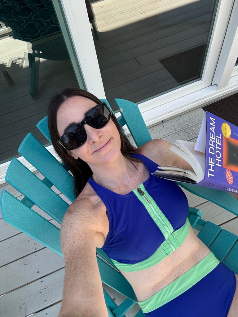 V decided he’s “not a fan of the ocean” and, honestly, same. I’m much more of a pool gal myself. We headed back to the house before the rest of the crew when he tired of the salt water and soon it was nap time. That meant Adirondack chair, book, and rosé time for me! I couldn’t have been happier. Also making me happy: that this bathing suit fit super well.