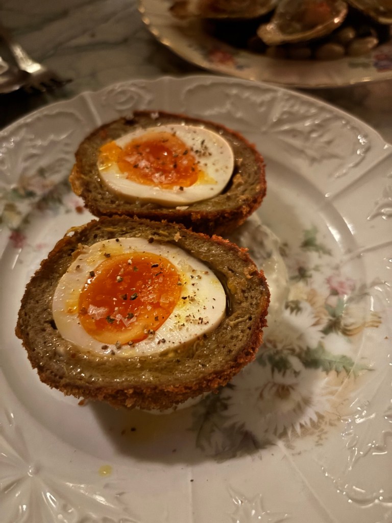 There were four of us, and we were all drooling over pretty much everything on the menu…so we ordered pretty much everything on the menu. For apps, we got the oysters, which were lightly charred. The scotch egg had a perfectly cooked yolk and was made with curried lamb – a nice lil spice update. I loved the crab toast with uni and Meyer lemon. We also got the white asparagus with sorrel and bottarga, the snap pea salad, green olives & sheep’s cheese, and the veal sweetbreads with hen of the woods & watercress. Everything was crazy good and let the fresh herbs and seasonal ingredients to the heavy lifting.