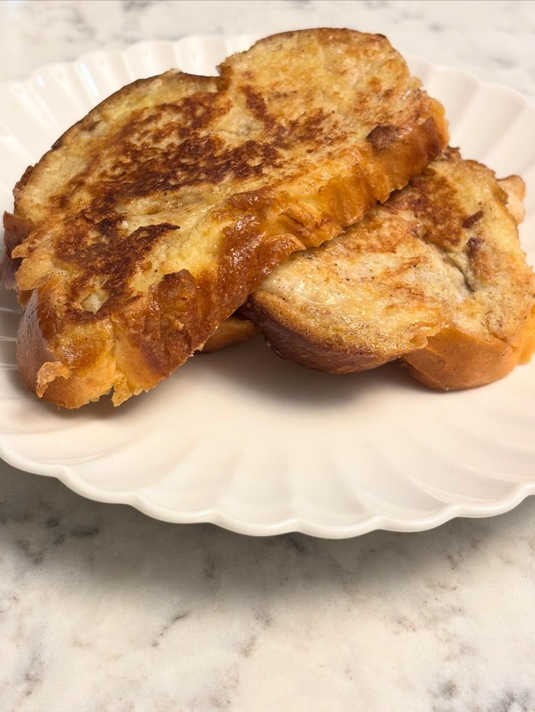 French toast is one of those dishes I somehow never made myself. I typically gravitate toward savory brunch dishes and on the rare occasion I craved French toast, my mom always made it for me. Now that V requests challah weekly, I have a surplus of bread and I finally decided to take advantage. I didn’t realize just how easy it was to make! I added a little vanilla and pumpkin pie spice to the egg/milk mixture and it was a great move. Inspired, some may say.