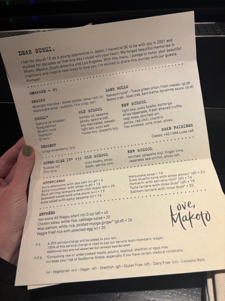 In DC, coincidentally right next to where I was staying, Chef Makoto Okuwa has opened a food hall concept named Love, Makoto. What’s unique about this Japanese food hall is that each restaurant comes from him and his brain (whereas food halls typically represent a variety of chefs) but covers different dining styles (four, to be exact), from quick service to omakase. I am a sucker for a good omakase, especially a reasonably priced one, so I hit up Dear Sushi ($85 for 15 courses with optional sake pairing and opportunity to “supersize it”…I tacked on both, obviously).