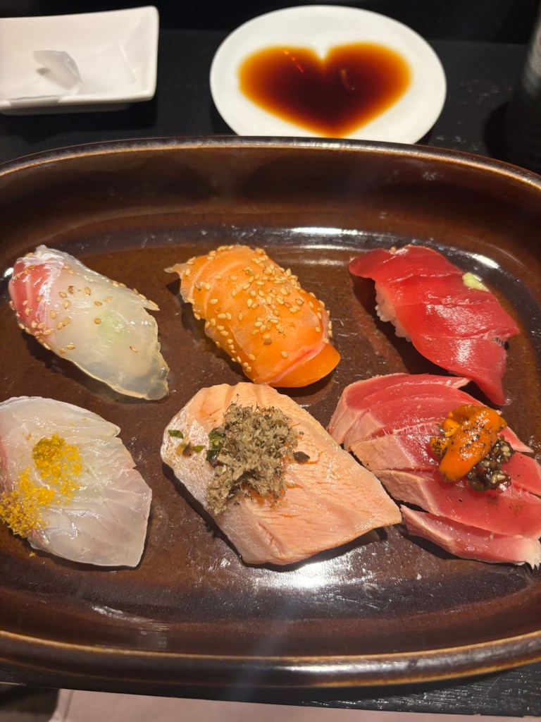 Dear Sushi is a love letter – a real physical one you’ll see when you get the wax seal menu – to sushi – both its deeply rooted traditions and the evolution it has experienced. I was wary of the gimmick of it all: the soy sauce dish forms a heart once your pour in the condiment, for example – is this all for social media? Nope. I found the flavor and intention to back it all up.