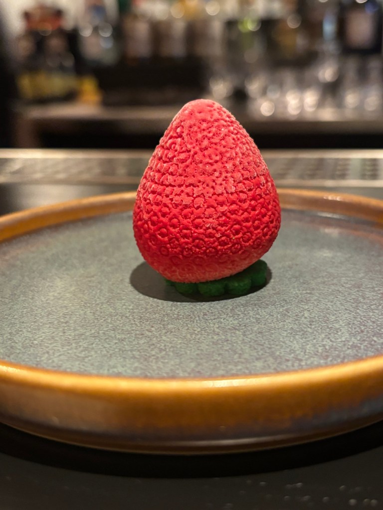 The final course was a dessert – not something you typically get at an omakase experience. This is the kind of thing I’d usually swat away – I’d rather have another savory course – but this strawberry ice cream with puree and shell was a trick to the eye and a perfect end to the meal.